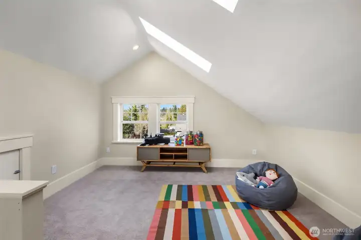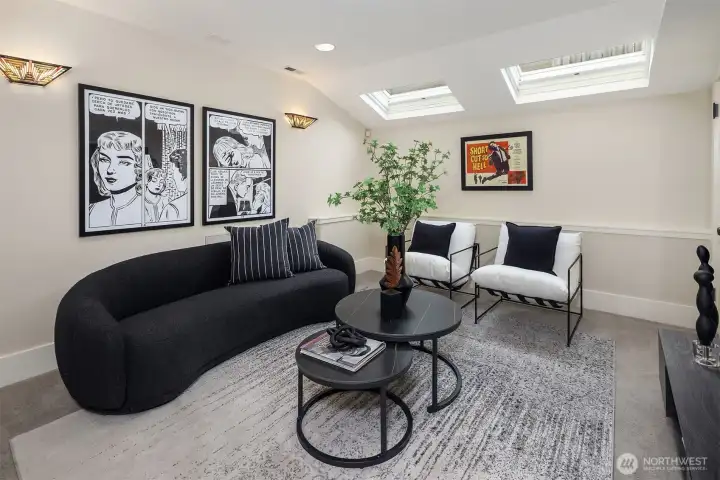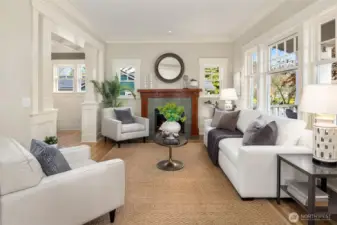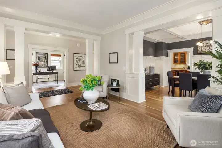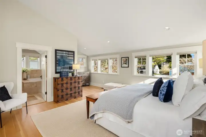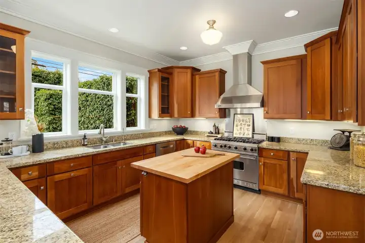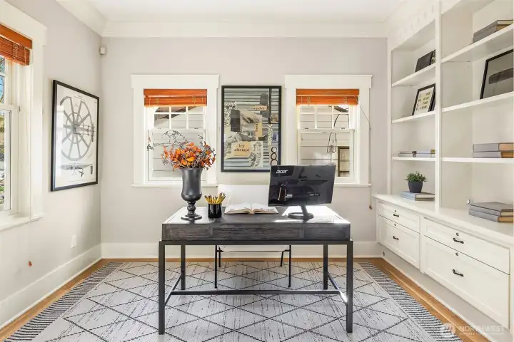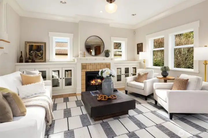 Situated in sought-after Laurelhurst, this exceptional turnkey Craftsman has 4 bedrooms + full office, 3.5 baths, and whimsical loft. This meticulously maintained home seamlessly blends classic charm with sustainability and modern luxury. Timeless aesthetics can be found in the white oak hardwoods, huge windows, box ceilings, maple cabinets, classic wainscot and millwork, and enduring craftsmanship. Interiors are further enhanced by custom built-ins in the basement, office, and gourmet chef's kitchen, as it opens to the family room and backyard. A bespoke smart home system integrates smart wiring, whole-home sound system, security alarms, and other important controls. Constructed as a Green-Certified residence (4 star Built Green AND NW Energy Star), this house features eco friendly construction and materials, such as solar panels producing most of the annual energy (incl heating, cooling, electricity, and EV), along with a rainwater cistern that irrigates all the landscaping. The outdoor space is a serene retreat, with professional landscaping specifically designed with mature plantings for privacy, thoughtful pathways, water feature, built-in concrete bench, custom lighting, and low-maintenance turf. The neighborhood has hidden public walkways for lake access, and this home is an easy walk to the elementary school, the park, Met Market, shops & cafes on SP Way and the Burke Gilman trail. Just a few more blocks away is UVillage, light rail, UW trails(and UW)& lots of parks.