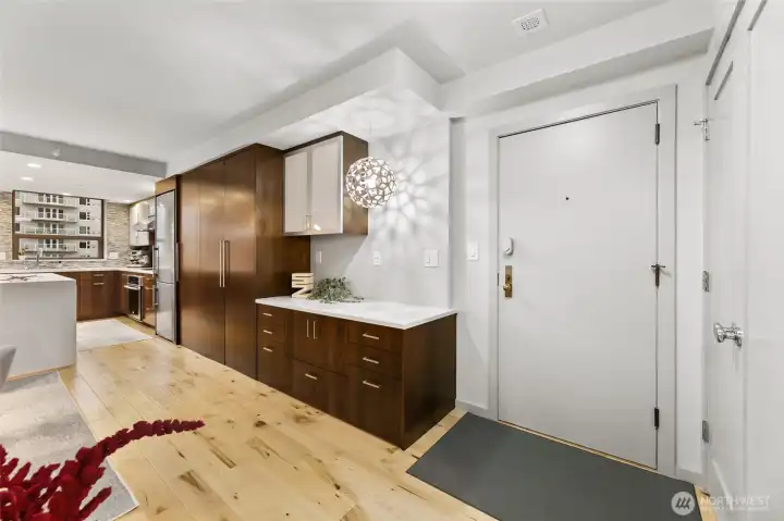 Step into this magazine-worthy urban oasis where thoughtful design and high-end finishes come together in perfect harmony. This beautifully reimagined one-bedroom condo has undergone a complete studs-out renovation, with over $150K invested to deliver a refined blend of modern elegance, comfort, and everyday functionality. The open-concept living space is filled with natural light and showcases iconic Space Needle views, creating an inspiring backdrop for daily living and entertaining. An enclosed patio extends the living area and offers a flexible retreat, while a dedicated area for a home office supports today’s lifestyle needs. Custom California Closets throughout the residence provide exceptional organization and storage. The spa-like bathroom features a heated floor accented by Ann Sacks penny tile, adding a luxurious touch to your routine. Residents enjoy a host of amenities including secure entry, garage parking, an outdoor pool, sauna, hot tub, fitness center, and a stunning rooftop deck with sweeping city and water views. Ideally located near acclaimed dining, shopping, and entertainment, this home delivers both style and convenience in one exceptional offering. A true must-see.