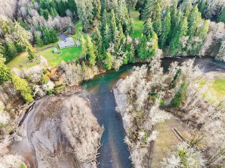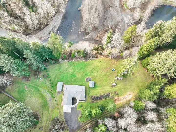 Beautiful Cathlamet -- NEWER Built in 2022 -- 1 Level -- PRIVATE & SECLUDED -- 2.34 ACRES -- Riverfront -- 3 Bedroom / 2 Bathroom -- 1721 Sqft -- Open Great Room Concept -- Living Room w/ Fireplace -- Kitchen w/ Island, Eating Bar, Stainless Appliances & Pantry -- Dining Room -- Primary Bedroom w/ Walk-in Closet & Full Bathroom -- Laundry Room -- Heat Pump & AC -- Vaulted -- Skylights -- Recessed Lighting -- Vinyl Windows -- Attached Double Garage -- HardiPlank Siding -- 2 Workshop / Sheds -- Trees -- Yard -- Garden Space -- RV Parking -- Septic -- Individual Well -- Dead End Street -- Located Near Outdoor Recreation Opportunities