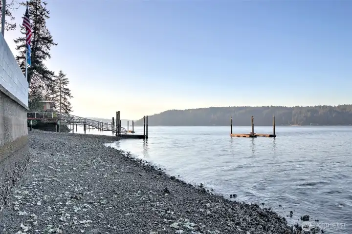 Water on three sides with no neighbors for over 150 feet either way! This great 2 bedroom 2 bath bulgalow sits behind a bulkhead right on the beach with views for miles. There has been lots of upgrades including a new roof, newer septic/drainfield system, updated water storage/pump and recent flooring. The tidelands are included and appear to be very productive! The upper level is dedicated to the primary bedroom with a 3/4 bath and the lower level features a smaller bedroom, a full bath, a utility/mudroom, a nice bright kitchen, a formal dining room and a big living area with tons of glass overlooking Hood Canal. Even gets a bit of a peak at the top of Mt. Washington. There is parking across the road from the cabin for 2 or 3 cars but the current owners have parked along the road as well. Twanoh State Park is only about a mile up the road for boat launching and overflow camping for extra guests. Alderbrook Inn is less than 4 miles away for golf and a great dining experience. Fishing, crabbing, shrimping and oysters! This property is just waiting for the someone(s) who are looking for a chance to build some equity and really make their mark(s) on a cool place in one of the most sought after areas of the Northwest, the South Shore of Hood Canal. This one is definately a good opportunity and the Seller hopes you will it love too!