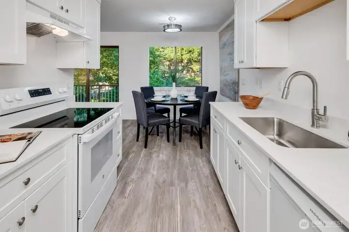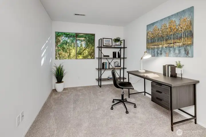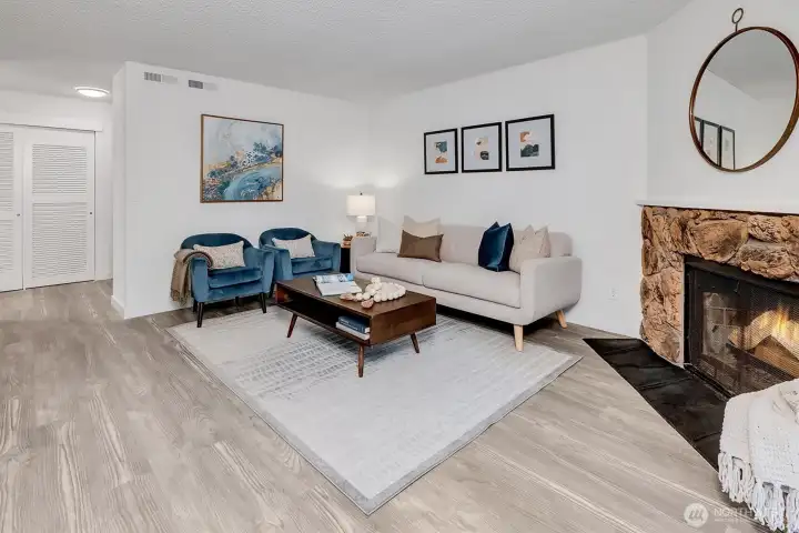 Best value in Kirkland, featuring Top-Floor living with just 6 easy steps up! Spacious, almost 1,000sf fully updated 2BR condo with versatile bonus space - perfect for home office or flex room. Live in it & enjoy, or hold as a GREAT RENTAL. Low HOA dues + No Rental Cap! Ideal location away from the hustle yet only steps to 3 beautiful parks, trails & bike routes. Minutes to Juanita Village, boardwalk, Totem Lake shopping/dining & I-405. New kitchen w/quartz counters & newer appliances. Fresh paint, new laminate floors, carpet, light fixtures, switches & outlets, updated bath with large shower. Relax by wood-burning fireplace or unwind on the private balcony, with extra storage included. Reserved parking, plus plenty of guest spots. All appliances stay, washer & dryer too. Easy living in move-in condition!