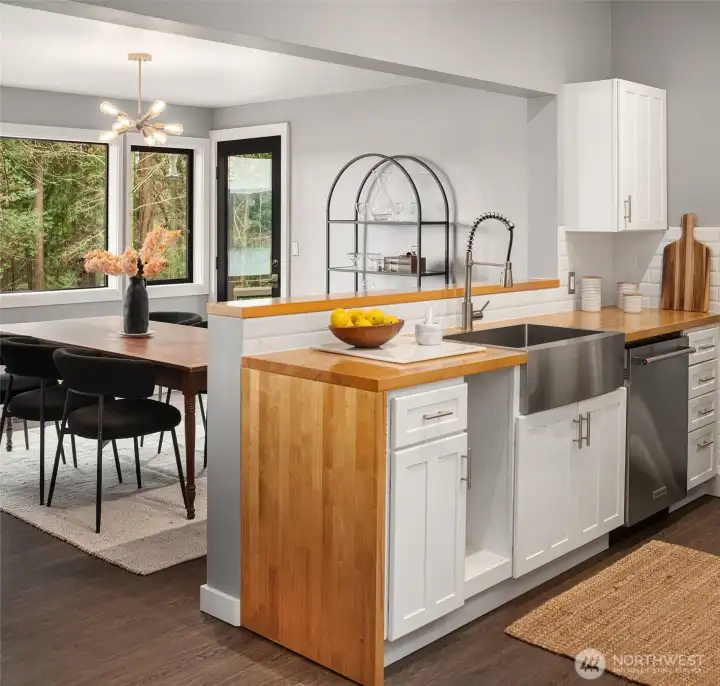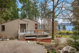 Fully updated shingled Northwest Contemporary offering 3 bedrooms and 3 bathrooms on 1.62 private acres, gated and fully fenced. Take in wide water views of Quartermaster Harbor and Mt. Rainier from most rooms, with sunny southeast exposure, cleared lawns and gardens, and a peaceful forested backdrop. With no neighbors in sight, this is true Vashon privacy, filled with light and views. Thoughtfully remodeled throughout, featuring a view kitchen with butcher block counters and stainless steel appliances, plus a fireplace for cozy evenings. The finished lower level lives like a true guest suite, with a full kitchen, full bath, and a large water-view bedroom, ideal for guests, multi-generational living, or a flexible work-from-home space. Major improvements include a new roof, upgraded windows and doors, a newer gas forced-air heating system, and whole-house water filtration. Xfinity high-speed internet. Set in Burton’s coveted Quartermaster neighborhood, just 5 minutes to town with excellent nearby water access for beach time, kayaking, and shoreline exploring. Large decks for outdoor lounging and dining, a circular drive with carport parking, and storage outbuildings complete the package. This is one not to be missed.
