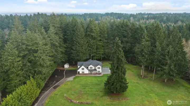 Prime Johnson Point location on 3.45 secluded acres, offering exceptional privacy in peaceful, natural setting. This well-maintained and nicely updated over-3,000 sq ft home has been thoughtfully refreshed, including interior and exterior repainting over past few years. Flexible floor plan includes 3 bedrooms plus two additional finished rooms, ideal for home offices, guest space, or hobbies. Multiple living areas provide outstanding versatility, including main-level family room, spacious upper level recreational/media room (including 2 large storage rooms, and welcoming living room. Two gas log fireplaces add warmth and ambiance. The large kitchen with adjacent dining area is ideal for everyday living and entertaining, while abundant windows throughout fill the home with natural light. Recent improvements include new flooring throughout, new roof approximately 4 months ago, and heat pump system replaced less than two years ago, providing efficient year-round comfort. The home also features two laundry facilities, one on main level and another conveniently located in upper-level primary bath. A 3-car garage offers ample storage, with a large gun safe included. Invisible fence encompasses the property; expansive yard, lovely large deck for entertaining!! A rare opportunity to own acreage, space, and privacy in one of Northeast Olympia’s most desirable areas.