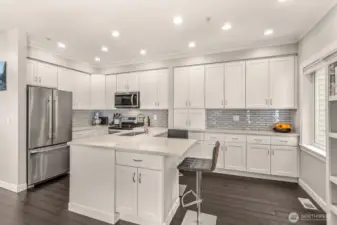 New Improved Price! Bright, beautifully updated corner-unit townhouse in the heart of **Mill Creek**! The main level features a remodeled kitchen with quartz countertops, stainless-steel appliances, and impressive custom storage. Generous living, dining, and family spaces flow effortlessly for everyday living or entertaining, plus a convenient half bath. Step onto your private balcony—perfect for BBQs or relaxing while overlooking peaceful green space. Upstairs, the spacious primary suite offers a walk-in closet and updated ensuite bath. Two additional bedrooms share a full guest bath and laundry for convenience. Enjoy year-round comfort with newly added A/C and a high-efficiency heat pump. Downstairs, the two-car garage includes an attached Bonus Room with a built-in Murphy bed—ideal for guests, a home office, media room, playroom, or hobby space. Located near highly desirable schools and **walkable to Henry M. Jackson High School and Heatherwood Middle School**. Just minutes to **Mill Creek Town Center**, parks, scenic trails, restaurants, **Town & Country Market**, and rapid transit options for easy commuting. Sits back off Dumas Rd in a peaceful setting. No worrying about siding, roofs, water/sewer, Ins. exterior, Roofs replaced in past 2 yrs. No surprise exterior costs. HOA covers it. Low-maintenance living in a prime location — this one checks all the boxes. May qualify for WA state down payment program?