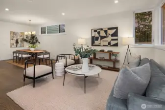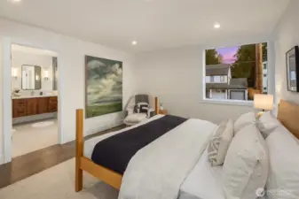Welcome to this stunning new single-family home in Northeast Seattle’s Wedgwood neighborhood. This expansive residence offers 4 bedrooms, 3.25 baths, a bonus room, attached garage, private yard and a large covered deck designed for year-round enjoyment. Thoughtful finishes pay subtle homage to the area’s mid-century roots while delivering a clean, contemporary feel. The main level features a bright, open-concept layout ideal for entertaining, complete with a convenient mudroom area and powder bath. The light-filled kitchen shines with a generous island, striking fixtures, and seamless access to the back patio and yard, perfect for grilling, relaxing or soaking up the sun. Upstairs, you’ll find three bedrooms, two full baths and a spacious laundry room. The luxe primary suite easily accommodates a king-size bed plus sitting area and includes a spa-inspired bath with walk-in shower and oversized double vanity. Don't miss the heated floors in all four bathrooms! The crown jewel is the top floor with an additional bedroom, full bath and versatile bonus room with built-in wet bar, opening to a fantastic covered deck - ideal for entertaining or unwinding. Neighborhood features tree-lined streets and easy access to local parks, cafes, and beloved spots like nearby Green Lake & Matthews Beach. With quick routes to University Village, UW, Seattle Children's, downtown Seattle, and major commuter corridors, this home offers the perfect balance of community charm and urban convenience.