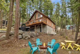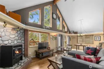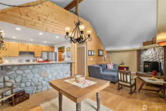 Spacious well-maintained Northwest retreat near Lake Cle Elum on a generous 1/4-acre lot. Sunny open interior with wood floors, vaulted ceilings, gas wall furnace & river-rock hearth. Enjoy beautiful mountain views from the living room and large deck. 2 bedrooms and full bath w/soaking tub on main floor plus an upstairs sleeping loft. Downstairs finished game room/den with pellet stove, live edge bar, & mudroom for all of your out-door gear. Rare, convenient dual access driveway with a 2-car deep drive thru garage, and ample boat/trailer parking. Outdoor seating with firepit & access to miles of trails from your doorstep. Pineloch Sun is a seasonal access community with lakeside lodge, pool, and sports courts. Short term rental use allowed.