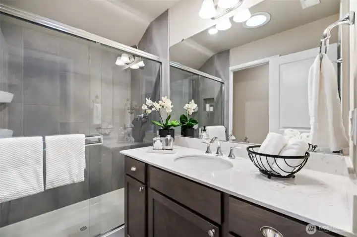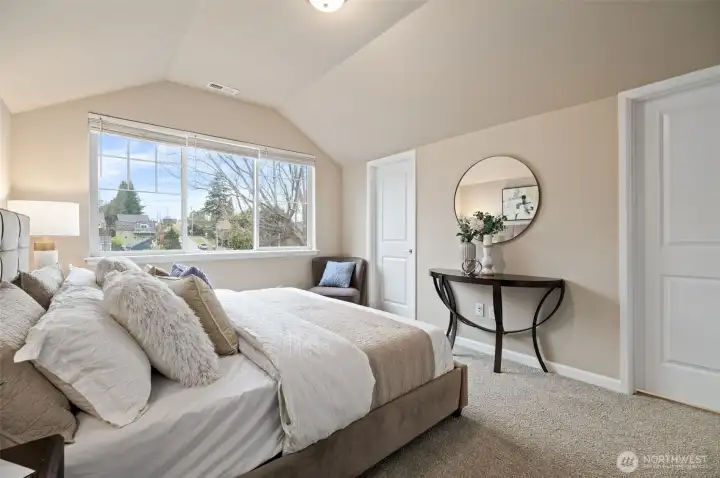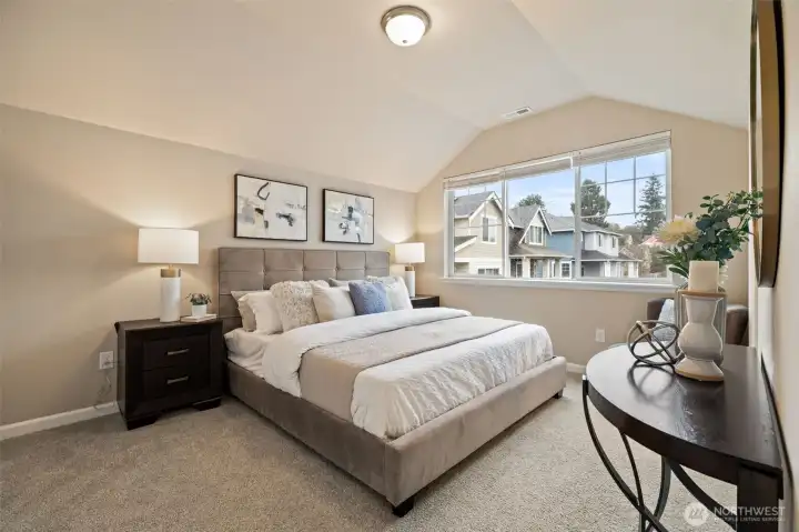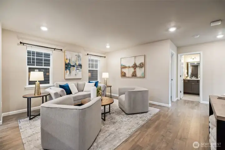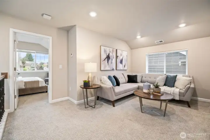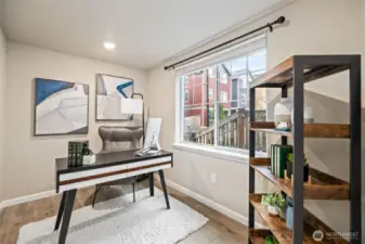 Quiet and private feel at this newer Built Green Lennar resale at the sought after High Point community of West Seattle! Sunny west exposure, adjacent to a community park and located on a dead end street, this fully detached home offers a spacious and functional layout with high end quality features throughout. Covered front porch and spacious entry welcomes you up the wrought iron staircase to the main level open great room with wood laminate flooring, island kitchen with slab quartz countertops and stainless steel appliances, dining area and covered deck for BBQ and amazing sunsets. One bedroom and full bath on the main floor. Upstairs primary suite with walk in closet and spa-like bath with tile floors, quartz vanity and tile shower surround. Additional bedroom, laundry room and an open loft/bonus room upstairs. Lower level features additional Den/Office/Flex space. Ring doorbell. Rocker light switches. Main floor lights Alexa Compatible. Wi-fi certified for smart home connectivity. Extra large 1 car attached garage + 1 car covered driveway parking. Efficient ductless heat pump w/ AC. Unmatched location, mins to DT Seattle or Alki Beach, Walking distance to schools & stunning city skyline views, Community Center, bus line, cafes & parks. Easy care fenced yard in a clean, quiet, and connected neighborhood. Strong HOA with low monthly dues + great neighborhood events and gatherings. Pre-inspected and move in ready!