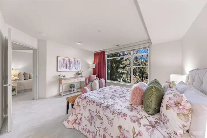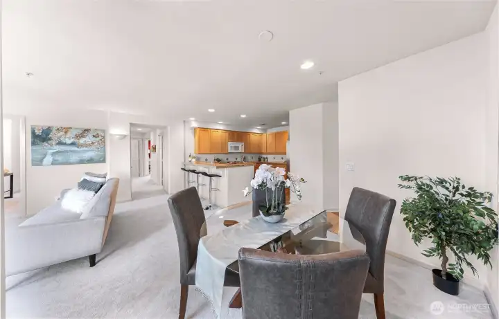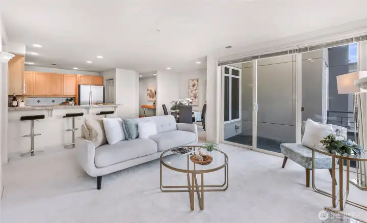 Experience the luxury, convenience & comfort of life at Brezza in a superb Downtown Kirkland location! You will love this light & bright Top Floor, Corner/End condo w/partial Lake Washington views from the private balcony, living room & 3rd bedroom/office! Features fresh interior paint throughout, brand new lush carpet & LVP flooring. Spacious kitchen w/breakfast bar overlooks the dining area & living room w/cozy gas fireplace - truly one of the best floor plans in the complex! Large primary bedroom w/5 piece en-suite & walk-in closet. 3rd bedroom is perfectly situated to be a den/office. Enjoy all the natural light pouring in from the many large windows. In-unit laundry & new A/C added in 2024. Move-in ready and pet friendly. Includes 2 secured parking spaces w/the ability to add electric charging & secure extra storage space. Brezza offers 2 guest suites for your friends & loved ones, huge community room w/kitchen, conference room, elegant lobby & courtyard, gym, hobby room, bike & kayak storage, secure guest parking & super convenient on-site manager. Unbeatable East of Market location - close to fabulous downtown restaurants, shops, beach waterfront, Marina Park, Kirkland Urban, Google, King County Library, Kirkland Transit Center & easy access to I-405, commuter routes & major tech hubs. Don’t miss this rare opportunity to embrace a lifestyle of unmatched convenience and community. Come and experience Kirkland living at its finest!