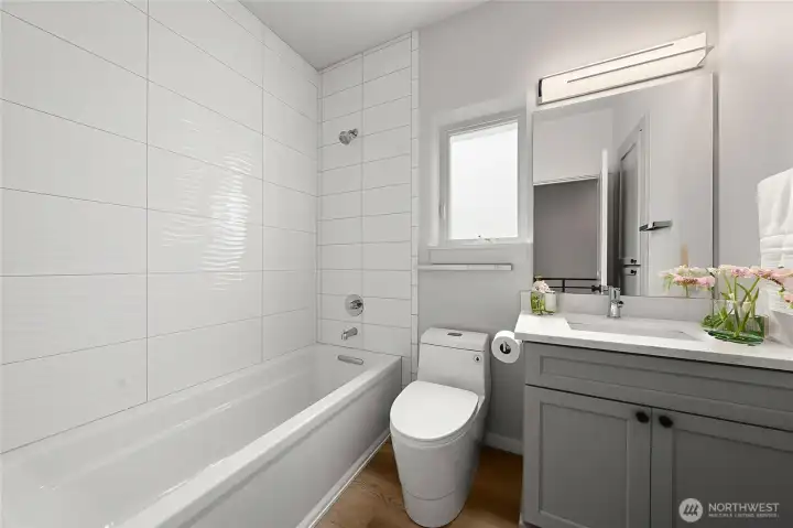 Welcome to Broadview’s Newest three-unit development. Start with a private patio perfect for entertaining. Seamlessly flows into this beautifully designed two-story home featuring a spacious main floor with an open-concept kitchen and living area. Main floor also features a half bath and utility room. Upstairs, you’ll find two comfortable bedrooms and a full bath. EV Charger and AC! Northgate Light Rail and the Interurban Trail are nearby. Close to dining, shopping, transit, freeways. Dreams really do come true!