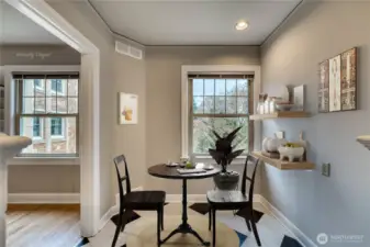 Vintage charm meets vibrant city living. Classic 1928 Cooperative nestled in the heart of Ravenna. You are welcomed by a lush garden and tranquil fountain as you enter the timelessness of the timeless foyer of this building. This large one bedroom plus a den, huge great room, kitchen with eating space, full wall of book shelves and plenty of storage. All of this has just been completely repainted and all hardwoods have been refinished. All is light and bright and ready to move in. Park Vista Cooperative is perfectly located to enjoy views of Cowen and Ravenna Parks and all that goes on there. So many opportunities to enjoy your surroundings with nearby farmers markets, light rail, bookstores, shopping, UW Campus, Green Lake, U District's shops. Cooperatives are unlike condos as they cover taxes, water, heat, sewer, laundry, storage locker, garbage and earthquake insurance. Don't miss your chance to call this property home. You will love this opportunity.