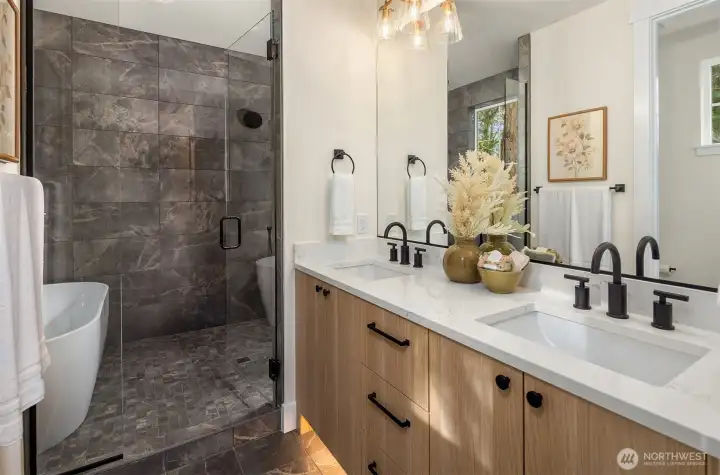 Welcome to this enchanting cottage-style home by renowned builders AR Homes, ideally located in the Highlands neighborhood of Kirkland. The surprisingly spacious main level features a welcoming living room with fireplace and a beautifully appointed kitchen with a generous island and plenty of room for a dining table, perfect for everyday living and easy entertaining. A main-floor office and powder room offer flexibility for working from home and hosting guests. Step outside to a sunny outdoor retreat ideal for grilling, gardening, or simply unwinding. Upstairs, two bedrooms and two full baths provide comfort and privacy, including a generously sized primary suite with double closets and a relaxing soaking tub. Enjoy the best of Highlands living with tree-lined streets, nearby parks and trails, top-rated Lake Washington schools, and quick access to downtown Kirkland, waterfront dining, and major tech hubs.
