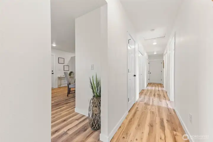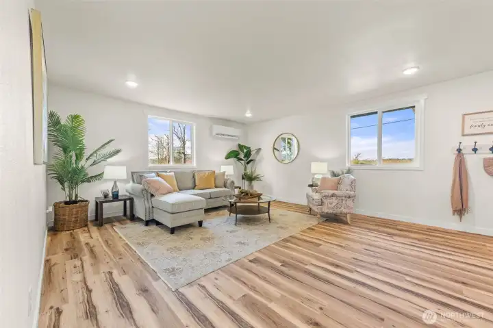 Better than new! And affordable too! Complete, down to the studs renovation on this shy 1500 sqft rambler. They say the kitchen is the heart of the home and you'll LOVE this kitchen complete with quartz counter tops, large island, pantry and SS appliances. Luxury vinyl plank flooring throughout. Ductless mini split for efficient heat and a/c. A spacious primary with a full bath. A thoughtful open floorplan and an oversized garage where you could fit 4 cars or 2 with a large workshop area. This better than new rambler is situated on almost a 1/2 acre on a dead end street and surrounded by farmland.