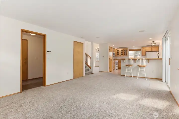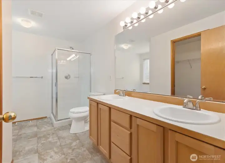 Welcome to this beautiful move in ready home in the coveted Lea Hill neighborhood. As you enter the light filled spaces, you will be greeted by soaring ceilings, new plush carpet, and fresh paint throughout. Open kitchen complete with bar counter and new appliances outlooks a secondary living space with cozy gas fireplace, a perfect set up for indoor/outdoor entertainment with easy access to the back patio and fully fenced expansive backyard. Head upstairs to a wonderful primary suite with 5 piece bath, soaker tub and walk-in closet. Second story complete with additional full bath and three more bedrooms. This home tops off with a grand three car garage with ample room for storage/projects. Come check out this rare opportunity of comfort and convenience.