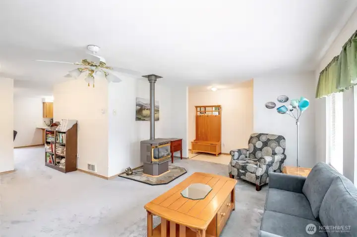 Beautiful rambler on 1.59 acres sitting above the Orting valley with serene views and rural privacy. This well cared for home has a brand new roof (2026), and leaf guard gutters were installed a few years ago. Expansive kitchen with breakfast bar and open concept family room. Additional dining room and living room with freestanding propane stove. 3 generous sized bedrooms Plus office that could be used as a bedroom and 2 full bathrooms. Enjoy the peaceful surroundings in your large fenced yard with fruit trees including plumbs and oriental pears. Rural living just 15 minutes from centers of commerce in Bonney Lake, Orting and Puyallup. This is the one you've been looking for!
