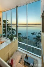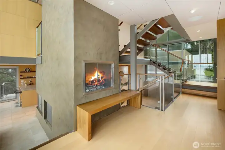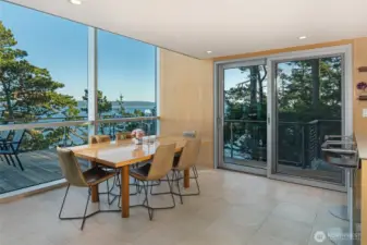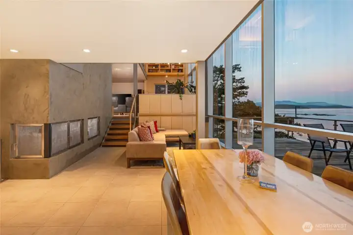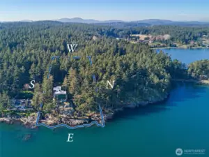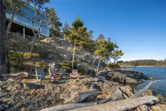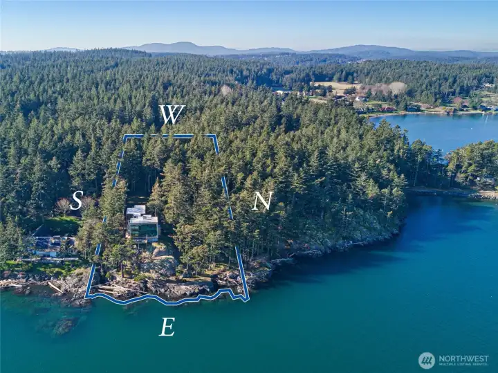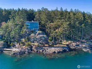 Striking contemporary waterfront retreat on Pear Point. The property offers 2.25 acres with 166+/- feet of rocky shoreline with sweeping marine views and privacy, just minutes to town. Exceptional views from every room and hardwood floors throughout. Stunning glass and steel construction with a wall of windows that showcase expansive light and sunrise views of the Channel, Mt Baker, and the other islands. Designed by architect Vasso Demetrious, the home blends modern design with the natural beauty of the San Juan Islands. The multi-level main residence features 2 bedrooms and 2.25 bathrooms. The media room and stunning office both have open views and fireplaces. The office features a built-in sliding wall bookcase. Living space, dining area and kitchen open to large decks that take advantage of views and center around a fireplace. The home features radiant heat, efficiently powered by a geothermal heating system. Convenient state-of-the-art remote control of the lighting, entertainment and security system. There is additional living space that provides flexibility for homeowners or guests with a game room, bedroom, bathroom, and private deck. Access to the guest living space is via connected deck or private garage entry. Nicely finished 3-car windowed garage. The Town of Friday Harbor has ferry and seaplane service and boat moorage, airport, shops, and other amenities. It is a rare opportunity to own a distinctive waterfront estate in an exceptional island location.