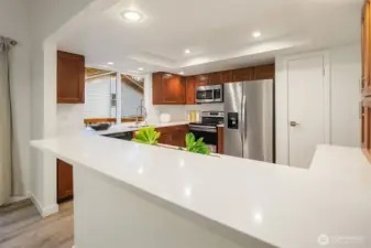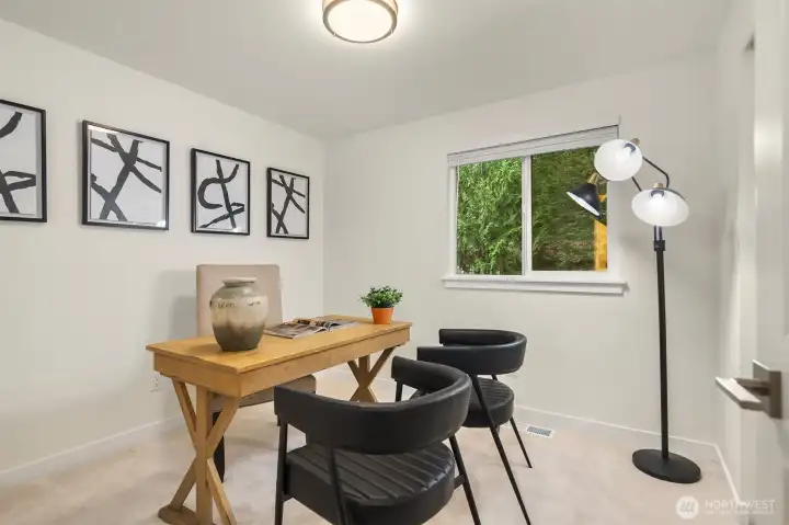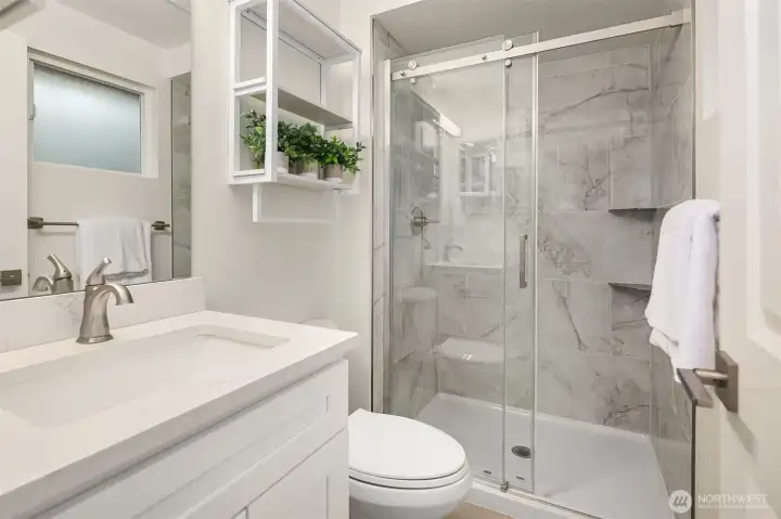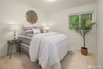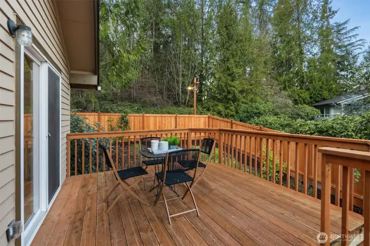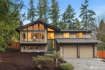 Beautifully remodeled residence on a quiet dead-end street bordering Ardmore Park and the Bellevue Trail System. Nearly every inch of this home has been thoughtfully updated to combine modern comfort with timeless appeal. The stunning living room boasts vaulted ceilings, a wall of windows that floods the space with natural light, and a cozy wood-burning fireplace, seamlessly connects to the spacious dining area and a deck overlooking the fully fenced backyard. The upgraded kitchen features new quartz countertops, ample cabinetry, a built-in breakfast bar, and SS appliances. Upstairs, the primary suite includes a newly remodeled ¾ bath, accompanied by two additional bedrooms and a newly remodeled full hallway bath. The lower level offers a generous family room with a fireplace and sliding door to the outdoors, a 4th bedroom, and a renovated ¾ bath, ideal for guests or multi-generational living. Additional Recent upgrades include: new roof, gutters, and gutter covers, new gas furnace, new LVP flooring, new carpet in upstairs bedrooms, new double-pane windows and sliding doors, new window blinds, fresh interior and exterior paint, new fencing, new interior and closet doors with locks, updated light fixtures, new electric switches and outlets, and a new hot water tank (2024). Award-winning Bellevue School District. Just minutes to Microsoft, downtown Bellevue, and Redmond, with nearby trails and parks right outside your door.