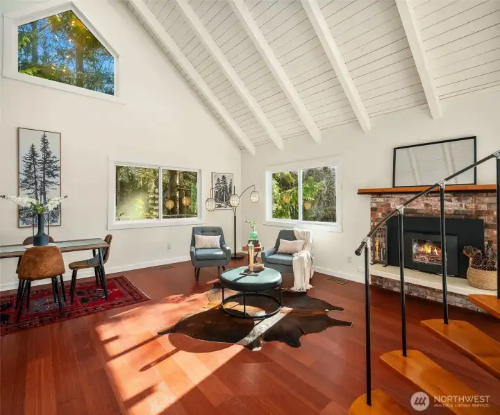 Elegance and style define this beautiful home in the best neighborhood on Vashon Island! Get the best of all worlds; Island living with easy access to all the city has to offer. Watch the ferries ply the waters between Vashon & Kitsap Peninsula, then zip down the hill to catch the passenger or car ferry to Seattle in mere moments. The home lives large with vaulted ceilings over open concept living/dining/kitchen. Kitchen has an efficient layout with newer stainless appliances, butcher block counters & quality cabinetry. There's a lovingly crafted, fun stair to the generous upper loft where views of water & mountains calm & delight; a great space for enjoying work, crafts, homework or play. 2 beds, 1 bath on the main floor; 1 bedroom, full bath, generous laundry/craft room on lower level. Big one-car garage with plenty of workbench space; room for the car & maker's space! Large, private deck off the great room feels like a tree-house retreat. There's a newer insulated metal roof & furnace for decades of peace of mind, fresh paint inside & out, and new carpet. Cozy wood insert pours heat in winter. Sweet, easy-care yard with raised beds for veggies & a custom playhouse. The neighborhood is cherished by all who live here and will soon have its own grocery/cafe. Includes beach access off Point Vashon for beachcombing, salmon casting, kayaking or just gazing at the water - come see this rare gem!