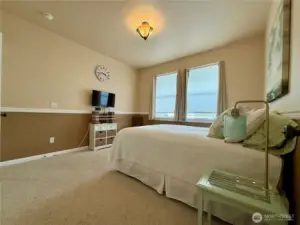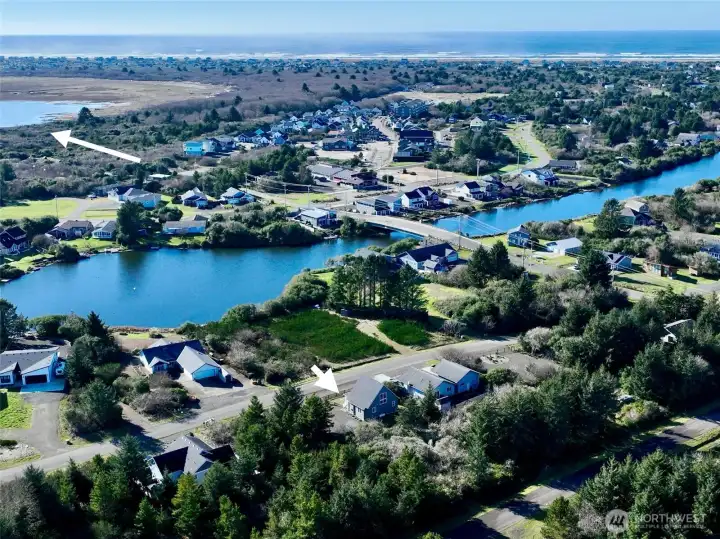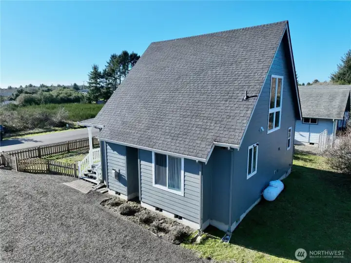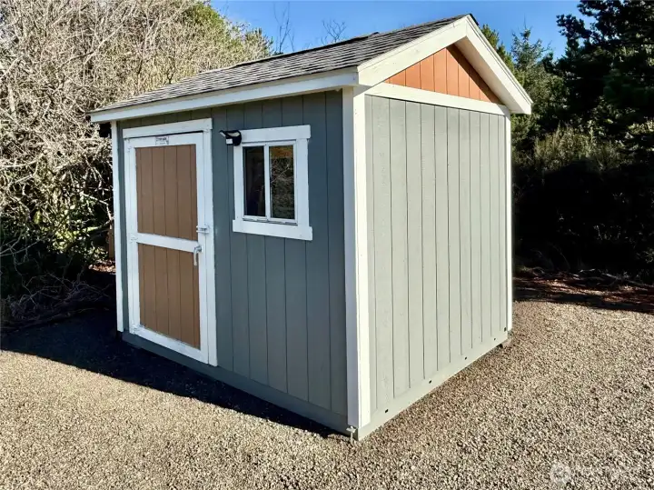 Pristine coastal cottage around the corner to a beach access path at Ocean Shores, Washington! Meticulously maintained by one owner, this 1,166 sf open plan features 2 bedrooms and 1.5 bathrooms. Low maintenance lot with gravel RV/boat parking area, Tuff shed and fenced front yard. Enter into the great room with propane fireplace and custom mantle. The eat-in kitchen is equipped with plenty of storage/prep space, tile back splash and newer stainless-steel appliances. The sun filled primary ensuite is located on the main floor and is completed with a 1/2 bathroom. Follow the stairs with wall of windows to the second story bedroom with Ship Canal and sunset views. Superior craftsmanship, 9' ceilings and soothing paint tones throughout. Newer Washer/dryer. New roof in 2025. Full-size 8,160 sf parcel. Use this investment as your full-time residence, vacation getaway or month-to-month rental. Out of the community club-buyer may opt in at any time and enjoy the Bayshore clubhouse and several club-owned parks scattered about the city. Perfect location near Tonquin Ave beach path and Oyhut Village for dining or canal boat launch into 23 miles of fresh lakes and canals winding about the peninsula. A bit further to ocean beach access and a few miles from our 18-hole golf course and town center for dining and shopping. Fantastic location in Shores!