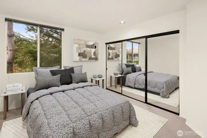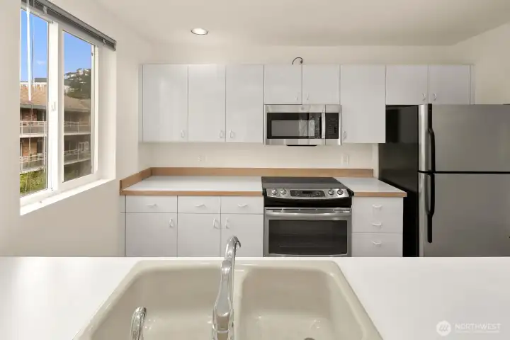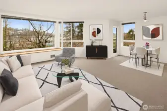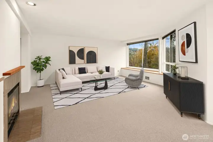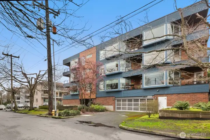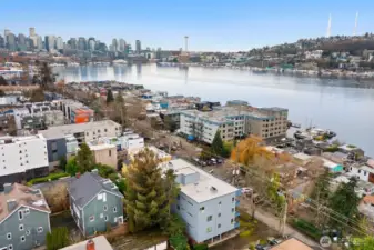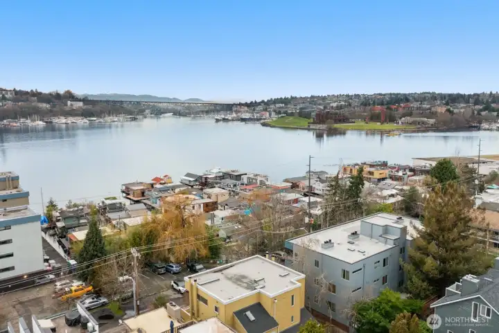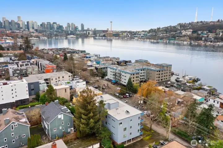 Light-filled Eastlake condo ideally located across from iconic Lake Union floating homes. This inviting 2-bedroom, 1.75-bath home offers an open layout with abundant windows, bringing in natural light and lovely treetop views of Lake Union. The comfortable primary suite includes a private bath, while stainless steel appliances and a cozy fireplace make everyday living easy and welcoming. Enjoy panoramic sunset views of the Space Needle to the Aurora Bridge, Olympics and beyond from rooftop. Major building updates in 2018 include new siding, roof, and high-quality double-pane windows. Two parking spaces—one secured garage and one carport—plus extra storage add rare convenience. Set on Fairview Ave E, a quiet, charming, tree-lined street close to waterfront walks, grocery, cafes, and all that makes Eastlake such a special place to call home.