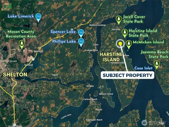 2.43 buildable acres on Hartstine Island with no HOA or CC&Rs. Gated entry with established gravel access and a prepared driveway area already in place. Soils on site are generally favorable for septic installation, subject to formal soil evaluation and county approval. A private well may be drilled, with potential to coordinate a shared well with the neighboring parcel. The terrain is mostly level with subtle elevation changes. Planted in Douglas fir, the property is positioned to mature into a cohesive evergreen landscape that integrates naturally with the surrounding forest while contributing long-term timber and investment potential. Conveniently located less than 30 minutes to Shelton and just over an hour to Tacoma. Hartstine Island Park is approximately 400 feet away as the crow flies, offering wooded trails, public facilities, and waterfront access to Case Inlet for recreation and shellfish harvesting. Need more space? An additional 2.48-acre parcel is available next door. A rare chance to secure buildable island acreage with both lifestyle appeal and long-term upside.