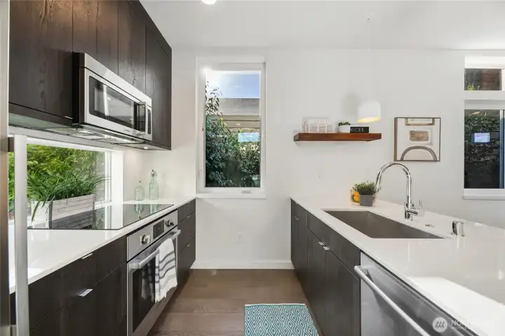 Time to increase your expectations! You'll love this custom-built stand-alone modern home perched high atop the Gatewood neighborhood with sweeping Sound, Olympic Mountain & sunset views from the primary suite. Featuring high end finishes throughout, you’ll appreciate the bright open concept main floor, slap quartz countertops & stainless appliances in the kitchen, ductless heat pumps for efficient heat & AC, the fully fenced private back patio, the large deeded parking space with an EV Charging Station & gorgeous wide plank hardwood flooring. This ideal location is 1 block from a great park with views and near the Junctions, West Seattle Bridge & Lincoln Park.
