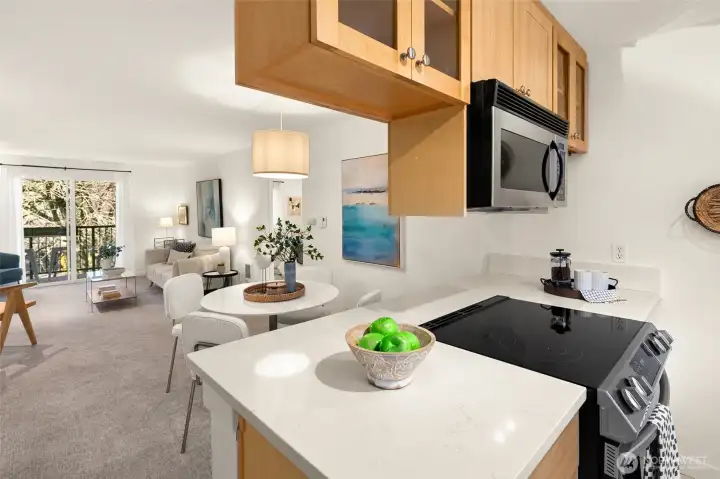 Tucked away from the main road and framed by mature trees, this thoughtfully designed condo offers a sense of privacy and calm. Natural light pours through the kitchen and living spaces throughout the day, creating a warm, inviting home that feels both peaceful and alive. Morning coffee on the balcony, relaxed evenings hosting friends in the living room with a fire going, and easy daily rhythms define life here. Residents enjoy access to the community center, which features a pool, jacuzzi, fitness center, sauna, and more - an extension of everyday living just steps from home. Beyond the front door, enjoy walkable access to everyday essentials, beloved local coffee shops, the summer buzz of the Woodinville Farmers Market, and scenic moments along the Sammamish River Trail. Surrounded by wineries, tasting rooms, and a genuinely friendly neighborhood, this home blends quiet living with the best of Woodinville just steps away.
