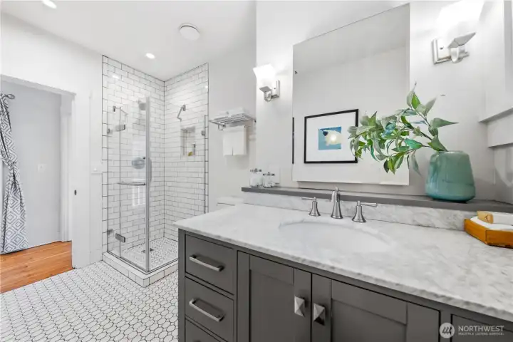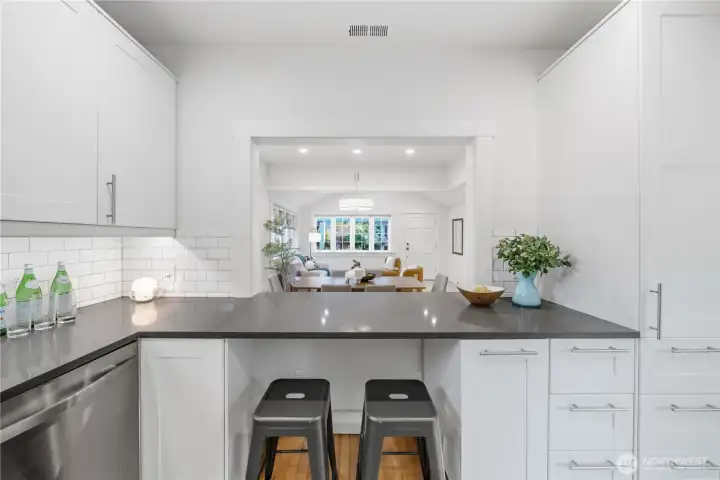 Exceptional remodeled Wallingford home just blocks to Burke Gilman Trail, Gasworks Park, and some of the best restaurants and breweries on the water. Close enough to take a paddle board out without getting in the car. A trellis covers the large front deck facing East for early morning coffees in the sun. A living room with vaulted ceilings and fir floors greet you at the entry with an open dining and kitchen for an excellent entertaining area. The west facing backyard is perfect for late summer nights with privacy from the neighbors on the large paver patio. 2 bedrooms and a bath along with an office space complete well-lit main floor. Downstairs you find rare high ceilings and natural light. Enjoy the second living space when people want different activities and 2 more bedrooms and a bath along with the utility room. Wallingford/Fremont and a few neighborhood spots are all close by along with easy access to downtown, SLU, I-5, and 520. All within the Geo Zone for John Stanford International Elementary, one of the top schools in the country! The perfect blend of enjoying where you are while able to get to places quickly!