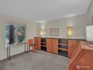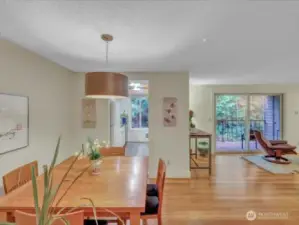 Enjoy your Vintage, craftsman style home, updated throughout to your taste and adjacent to courtyard lawns for your privacy! Kitchen offers Black Pearl granite countertops, drop in stainless sink, staging a beautiful tile surround etc. Gas fireplace insert, to lower heating costs, inside a Travertine faced fireplace w/ a handcrafted Walnut mantel. Primary bedroom w/ custom shelving inside His/Her closets. Wood blinds in all bedrooms as 2nd bedroom features solid Cherry cabinets w/ granite countertops. We changed out all doors, lighting fixtures, thermal pane windows, water fixtures, and the appeal of Bamboo flooring, through Living, Dining, entry, and hallway. Deck w/ storage. 2 sliding doors to deck, Full size W/D, 2 parking spots, etc.