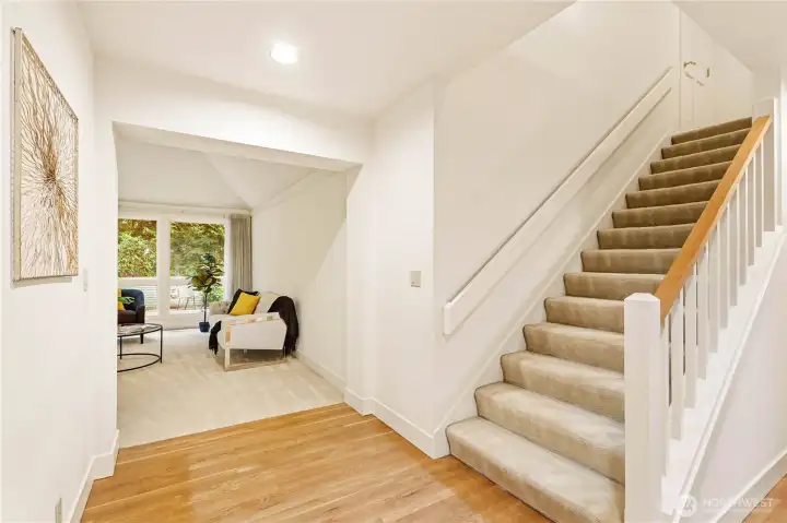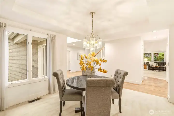 You will love living in the highly desirable gated community of Devonshire. The townhome is in the back corner of the complex and offers a private and peaceful park-like setting. This is perfect for someone who is looking to downsize and have the ability for worry free travel. The home feels and lives like a single-family home with its spacious layout and vaulted ceilings in the kitchen and family room in addition to the formal dining and living room. The primary suite is on the main floor with a spacious 5-piece bath and walk-in closet. Upstairs offers 2 generous bedrooms with walk-in closets, a flex/storage room and full bath. There is also a kitchen panty, laundry room, 2 gas fireplaces and plenty of storage. Enjoy the private backyard patio that is perfect for relaxing or entertaining. The garage has built-in storage cabinets and lots of additional attic storage. It is conveniently located just a few blocks away from all the amenities of downtown Bellevue. Walk to your favorite restaurants, shopping, parks and movie theaters. Within the award-winning Bellevue school district. There is a sellers pre-listing inspection report and home warranty for your piece of mind.