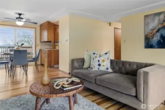Tucked on a quiet stretch of South Mission Drive in the heart of Lakeridge, this charming mid-century rambler with a daylight basement offers space, character, and partial Lake Washington views. With more than 2,000 square feet, 4 bedrooms, and 2 full baths, the home blends classic style with everyday comfort. Step inside to newly refinished hardwood floors, warm natural light, and built-in shelving that adds both function and vintage appeal. Enjoy glimpses of the lake from the deck—perfect for morning coffee or evening unwinding. The finished daylight basement expands the living space with a generous recreation room featuring a second fireplace, a fourth bedroom ideal for guests or a home office, and a utility room with a full-size washer and dryer with space for storage. Conveniently located just minutes from downtown Renton’s shops, dining, and The Landing, with easy freeway access for a smooth commute to Seattle, this inviting home offers the perfect balance of tranquility and accessibility.