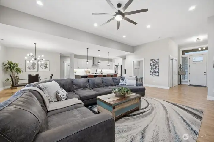 Who is looking for a beautiful home with a 30x30 shop, .55 acre, huge backyard, tons of parking, open concept floor plan with split bdrm layout. You will love this one, the great rm with high ceilings, lots natural light, gas fireplace and the kitchen won't disappoint you with 5x10 island and it definitely had to have a big sink too, ample of counterspace & cabinets, then you got your large walk-in pantry to store all your goods. Spacious primary suite with access covered patio, large bath with dual vanities, free standing tub, and tiled walk-in shower. In addition 2 oversized bdrms sharing bathroom with lots of counterspace. 4th bdrm can be an office or guest bdrm as you wish or need it to be. Epoxy floors in your oversized 3 car garage, water softener, and insulated garage. Lets not forget the 30x30 finished shop with lift, .5 bath, epoxy floors, (wired for mini split) got to see. Loving the outdoor living space with oversized covered patio, hot tub, garden beds and the landscaping very well thought out with concrete curbing, rock area, concrete area and walkways. In addition 10x16 shed with 2 lofts for storage, rain gutters and so much more.. you got to see and make this your amazing home.
