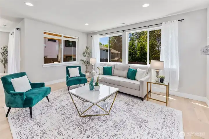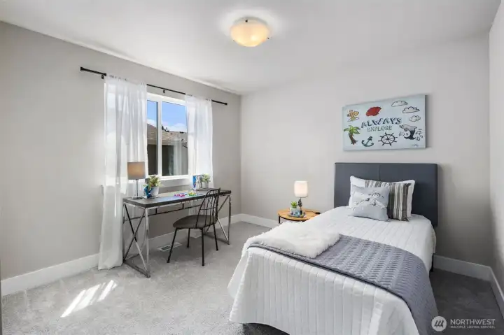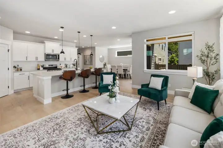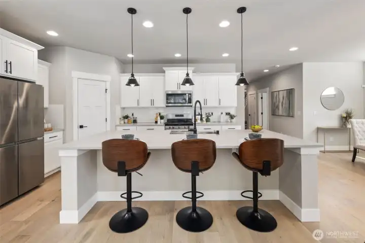 Welcome home to a place where comfort meets quiet sophistication. From the moment you step inside, soft natural light and thoughtfully designed spaces create an atmosphere that feels both refined and welcoming. The main level unfolds effortlessly, offering an elegant living area ideal for intimate gatherings, relaxed evenings, or slow mornings with coffee and sunlight streaming in. A versatile main-floor bedroom paired with a nearby ¾ bath adds a layer of convenience - perfect for guests, multigenerational living, or a private home office.Upstairs, a spacious loft provides endless possibilities - whether it’s a cozy retreat, creative workspace, or play lounge. The primary suite is a true sanctuary, designed for rest and renewal, complete with generous proportions and the added luxury of a walk-in laundry room that makes daily living feel effortless.Step outside to your own private escape. The serene backyard, framed by natural beauty, invites peaceful evenings, weekend barbecues, and moments of quiet reflection under open skies. Every detail of this home is crafted to support a lifestyle of ease, connection, and understated luxury - a place where everyday moments turn into lasting memories.