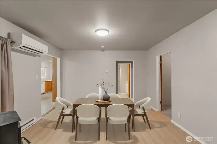 Great Aberdeen home with solid updates and space to spread out! This 3 bedroom, 1 bath home offers ~1,500 sq ft of comfortable living on a ~6,250 sq ft lot. The home has been refreshed with new paint inside and out and features a welcoming tile entry, a generous eat-in kitchen, and efficient heating with a ductless heat pump and pellet stove. A large utility room/mudroom offers everyday convenience. The rear breezeway leads to a two-car garage with an attached carport, creating plenty of covered parking and storage space. A well-rounded home in a convenient Aberdeen location with room to enjoy inside and out!