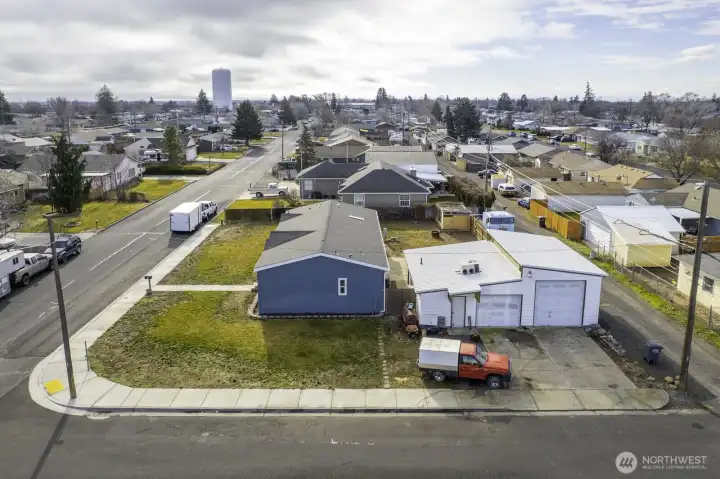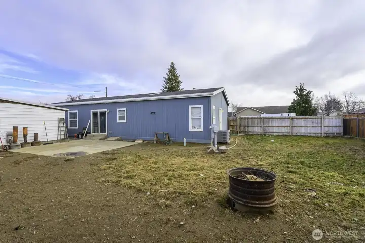 This one hits all the buttons! This 1,512 sqft, 2018 MH has fresh interior paint, central heat and a/c, is on a double lot with a large fenced yard, patio, has a chicken coop,and a 1000+ sqft insulated shop with heat, radiant heat flooring, and a 3/4 bath, that is plumbed for an additional water heater. This property has alley access as well as a place to park your RV.