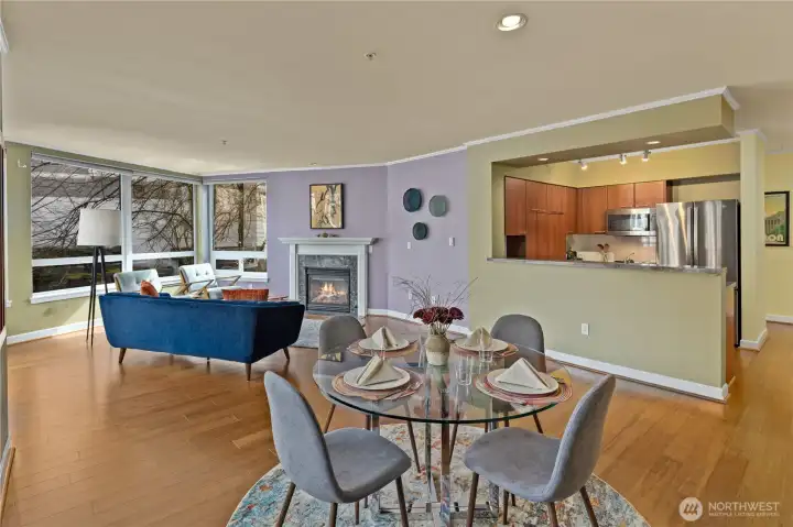 Open concept condo great for entertaining friends with gas fire place. All appliances updated and bamboo flooring throughout. Recently updated bathrooms and California Closets with ample in unit storage. 2nd Bedroom comes with a full size murphy bed/desk combination (mattress not included). Guest bathroom has a new, extra deep soaking tub! Private deck with peekaboo view of the Puget Sound down Hudson St. Unit comes with two tandem parking spots and the building has gym, sauna, community room, and roof deck with unobscured views of Puget Sound. HOA dues cover all but electric & the internet you choose. Heating is in wall electric as well as a gas fireplace. Walkable to the Alaska Junction with multiple grocery story options, restaurants, bakeries, shops, parks, nurseries, weekly Sunday Farmers Market. Monthly art walks and annual Alaska Junction festivities happen throughout the year. Close to the C Line for easy downtown transit access or free shuttle to the West Seattle Water Taxi. New in 2024: fridge, oven, W/Dryer, microwave, dishwasher. Very strong reserves: over $912,093. RENTALS: NO CAP & 30 day min. Very well run HOA, well maintained bldg. Dog/cats ok: 50# max. EV charger across the street. Very walkable and bikable area and solid schools!
