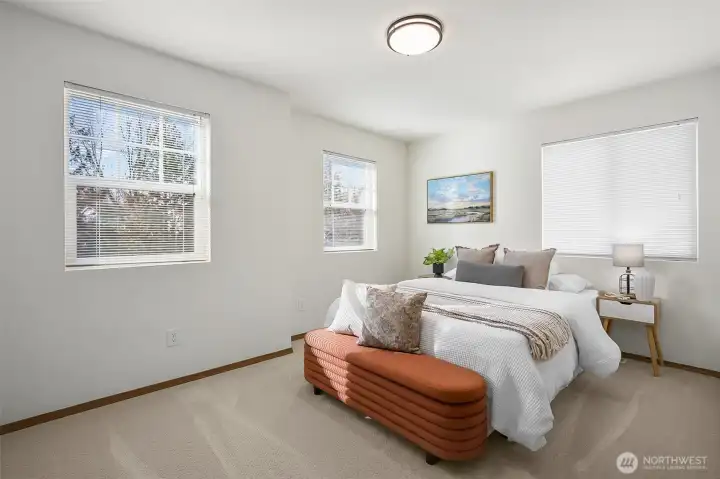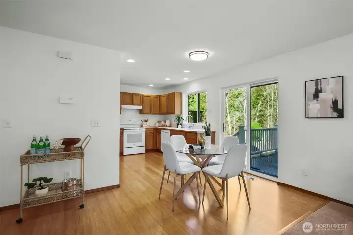Beautifully Maintained Silver Firs Home on a Rare Two-Sided Greenbelt Lot. Discover this private & tranquil residence, ideally situated at the end of a cul-de-sac. The thoughtfully designed floor plan offers flexibility & space, featuring 4 bedrooms plus a versatile bonus room upstairs and both living/dining & family rooms on the main level. Well-appointed kitchen has update appliances, a pantry & durable bamboo flooring. The inviting primary suite includes a spacious walk-in closet and ensuite bath. Step outside to the expansive newer easy-care Trex deck—perfect for entertaining, hosting BBQs, or simply relaxing while enjoying the peaceful natural surroundings. Lovingly cared for by the original owner, this move-in-ready home includes numerous updates: a new roof, gutters and garage doors; fresh interior paint; newer carpet, updated appliances and more. Enjoy access to neighborhood parks, sport courts, playgrounds & miles of scenic trails—all just steps away. The elementary & middle school are right in the community & highly rated. Close to amenities including Willis Tucker County Park with play fields, trails, water park & separate dog park. YMCA, shopping & restaurant's just minutes away. Just a wonderful community!