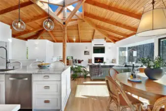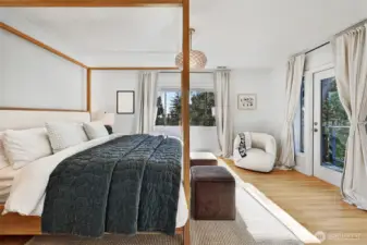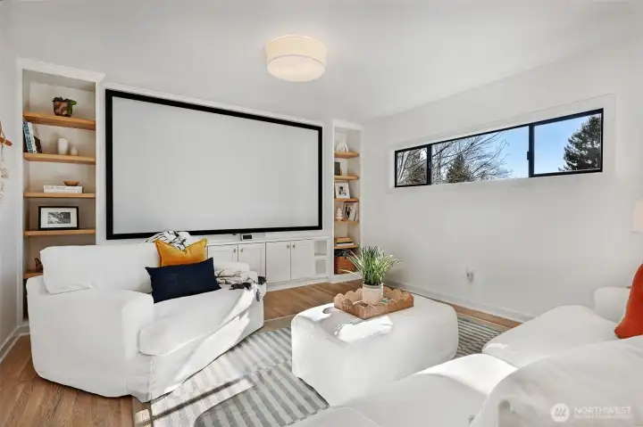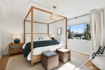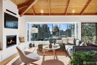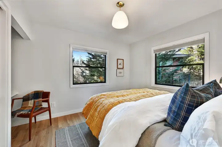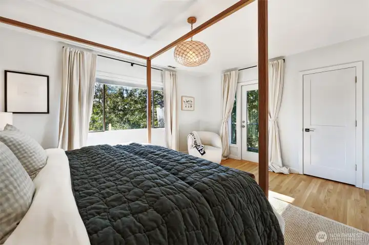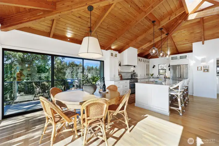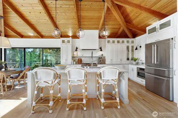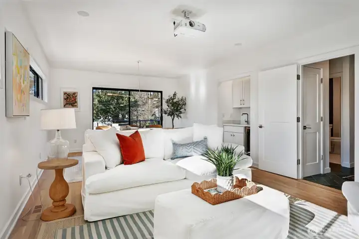Welcome to the Parasol House. This sophisticated Northwest contemporary residence across from Lincoln Park is a bespoke home full of architectural interest. It is fully remodeled with refined finishes throughout. This exceptional home features a reverse open floor plan that elevates everyday living, placing the primary entertaining spaces on the upper level with views of sunsets and Lincoln Park. The top floor is a true showpiece, offering a dramatic great room with vaulted, wood-beamed ceilings, new fireplace and expansive areas centered around a stunning new kitchen with marble countertops and top-of-the-line appliances - designed for both effortless entertaining and creativity. The entry level welcomes you with a large and inviting media room featuring a theatre, a wet bar and access to a generous outdoor entertainment space, tucked in the trees. This level also allows for a well-appointed bedroom and three-quarter bath, perfect for guests or working from home. The second level hosts a tranquil primary suite with walk-in closet, full bath, and private deck, plus an additional bedroom, utility area, and three-quarter bath. Additional highlights include elevator access to all levels, a two-car garage with plenty of storage and secluded hot tub - all with luxury and convenience in mind. Located close to friendly neighbors, parks and walking trails, ferries, shopping, transit and schools.