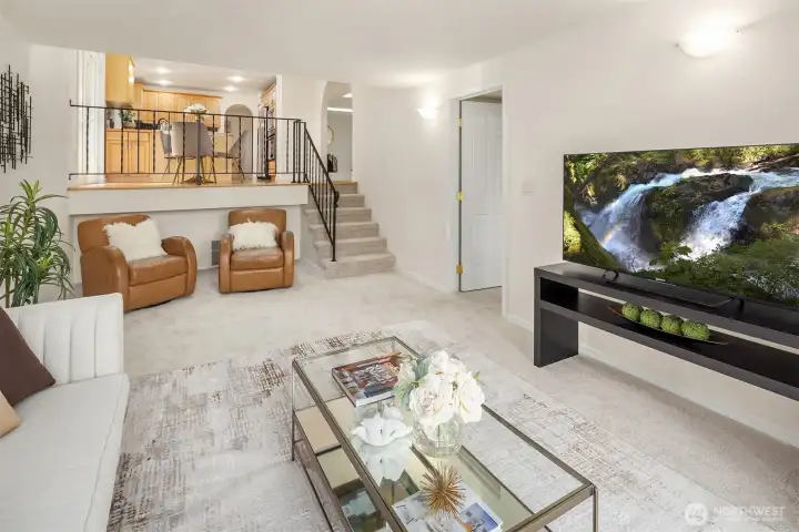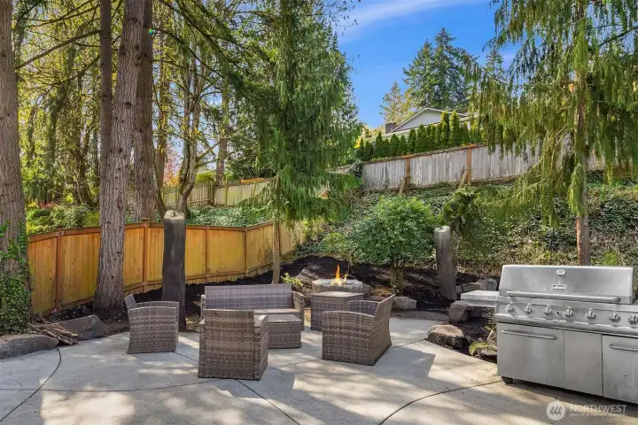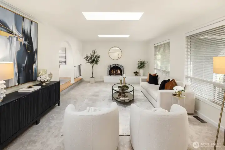 Set on a quiet oversized corner lot, this Mediterranean-inspired home offers light-filled living and functional flexibility throughout. Skylights and French doors bring in abundant natural light, while dual living spaces anchored by a wood-burning fireplace create comfortable gathering areas. The open kitchen features stainless steel appliances, generous cabinetry, and easy flow to the main living areas. A finished daylight basement adds valuable bonus space for a media room, office, gym, or guests. Upstairs bedrooms provide privacy, with peek-a-boo lake views adding a subtle highlight. Outside, the private backyard is thoughtfully designed for effortless entertaining, featuring a firepit, built-in BBQ area, and flat lawn perfect for play or evening gatherings. Recent improvements, including a new roof, fresh interior paint, and refinished maple floors, provide confidence and move-in-ready appeal. A rare blend of character, light, and lifestyle in a setting that feels both private and connected.