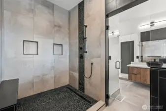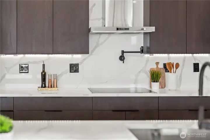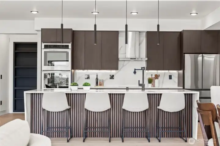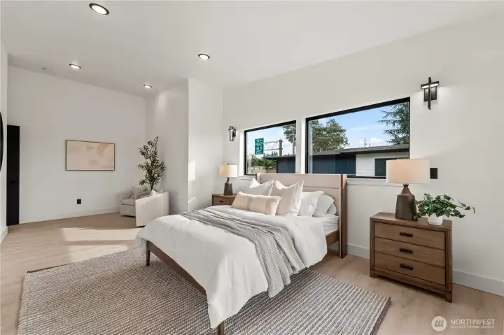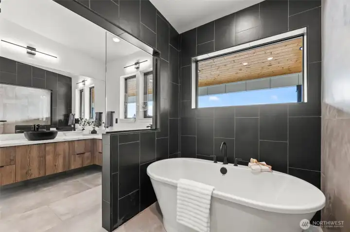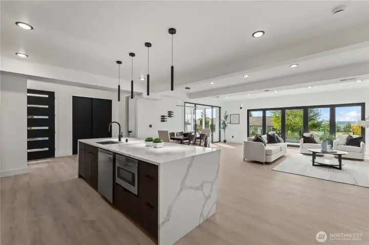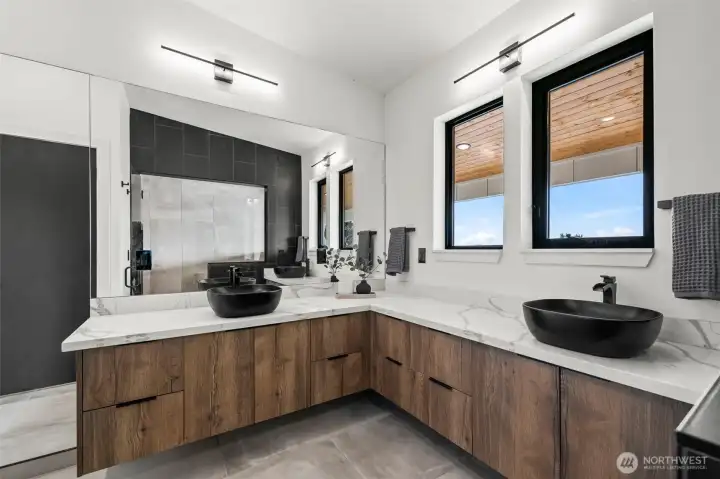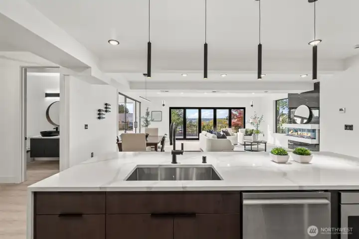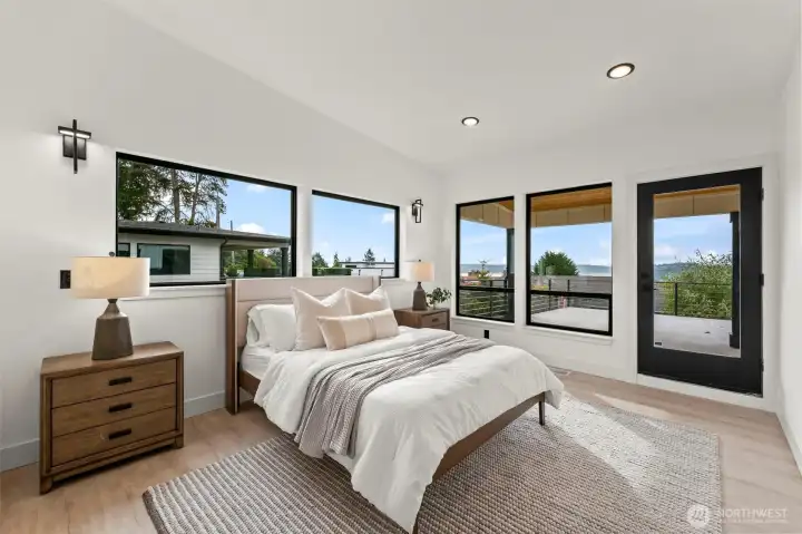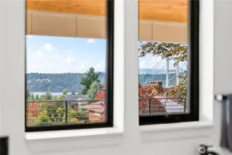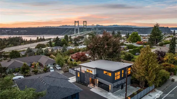 Modern new construction in North Tacoma 3898 sq ft of refined living with captivating views of the Narrows Bridge and Puget Sound. Open-concept design with a waterfall quartz island, office, expansive custom doors that blend indoor-outdoor living. 3 bedrooms, 2 baths include a primary suite with a rain shower & soaking tub, expansive covered deck off primary offers an outdoor fireplace and is plumbed for a kitchen. The 1,167 sq ft ADU includes 2 bdrm, a flex room, full kitchen, bath, laundry, and separate entry—ideal for multigenerational living or income potential. LVP flooring, pantry with custom Murphy door, electric fireplaces w/ambience options. Fully fenced yard with turf, 2 EV chargers, 2 car garage + additional parking spaces & much more! 2-10 Home Warranty.