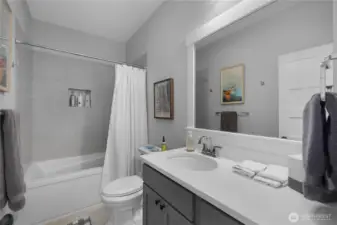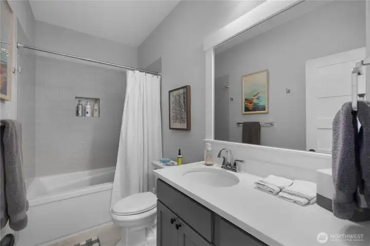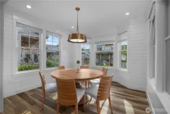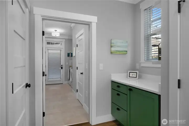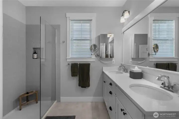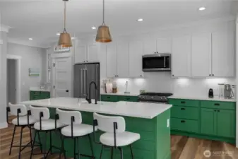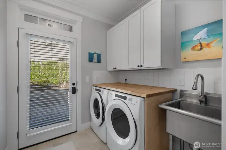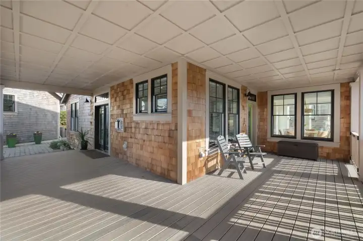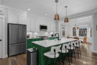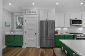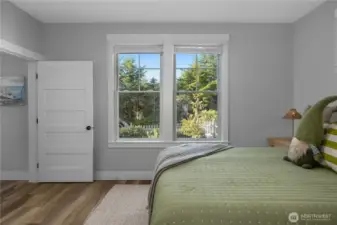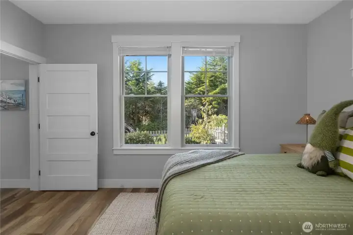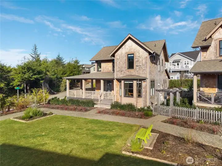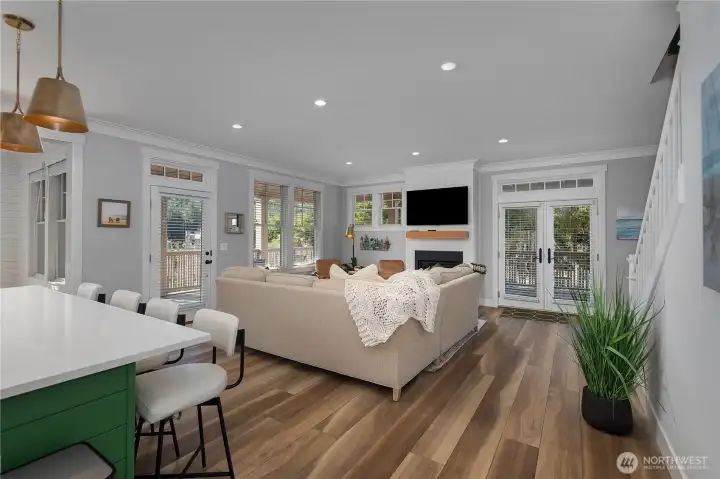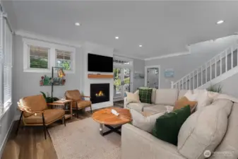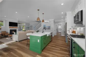 Welcome to Lucky Dog, a stunning home in a peaceful, secluded Seabrook neighborhood where every detail elevates coastal living. This luxurious residence features exquisite finish carpentry, including crown molding and shiplap throughout. The main level is designed for both entertaining and comfortable living, boasting a spectacular bump-out dining room with bay windows and a modern kitchen with vertical subway tile and high-end stainless steel appliances. The open-concept living space is anchored by a cozy gas fireplace. Functionality is provided by a large mudroom with a full-sized washer, dryer, cupboard space, and a utility sink. The main floor hosts a primary bedroom suite with a gorgeous en-suite bathroom featuring, a walk-in closet, and heated floors. The 2nd floor offers a large, bright, versatile rec room or home office, a second primary bedroom with its own en-suite, and a third guest bedroom next to a full bathroom. The home includes a two-car heated garage with twice-coated epoxy floors. Lucky Dog maximizes the Seabrook experience with a sunny, south-facing porch overlooking a wooded ravine, where the calming sound of ocean waves is audible. The backyard features a large patio with firepit, for outdoor entertaining and lots of gardening space. Its location is close to the outdoor pool, trails, and town center, making it the quintessential Seabrook retreat.