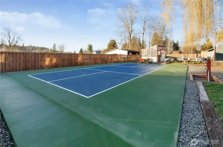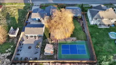 Situated in a highly desirable neighborhood, this 4-bedroom rambler offers an exceptional blend of space, comfort, and amenities. The expansive grounds include a versatile sports court and dedicated garden space, creating opportunities for recreation and relaxation. A standout 5-car garage (2 detached garages) provides ample room for vehicles, storage, and a shop or office setup. With Clarks Creek and scenic trails just a short walk away, this home delivers an ideal balance of convenience, outdoor access, and a beautifully maintained setting.