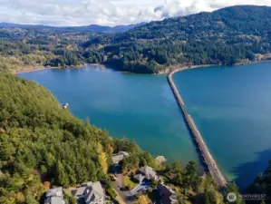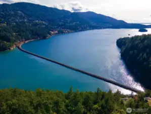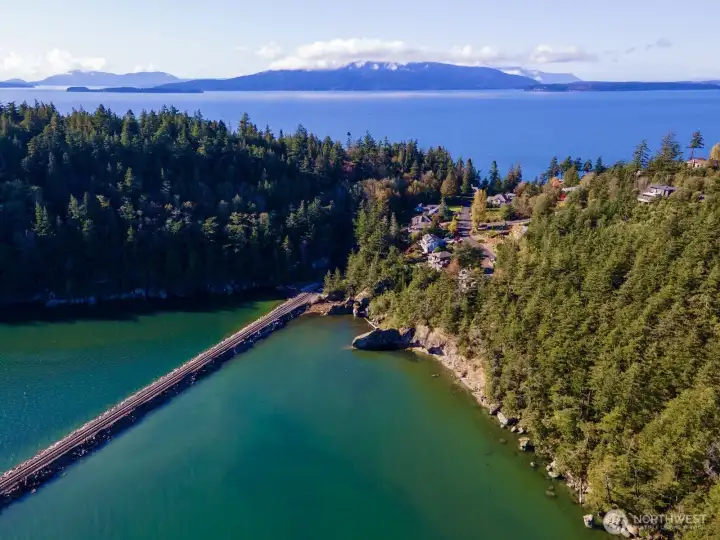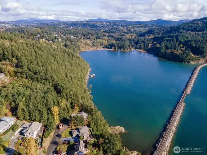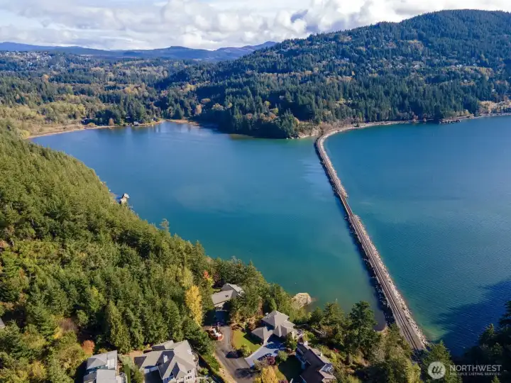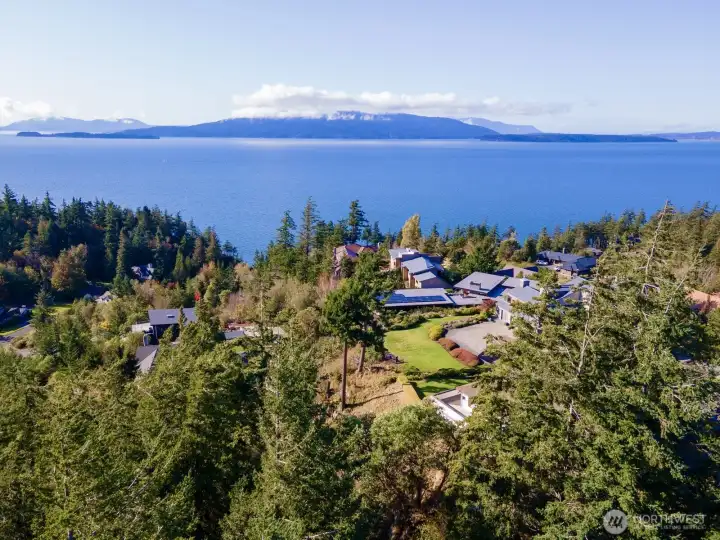 One of Edgemoor's rare and most beautiful lots, with spectacular views of the Chuckanut Bay, Bellingham Bay, the Olympics and the islands. If you are looking to build a home on a perfect hilltop site, at the end of a private drive which backs up to acres of thick forest, this 1.3 acre parcel is ideal for your dream home. The commanding views include island sunsets in the west, and the tranquil waters of Chuckanut Bay to the south. The road to the property is heated to keep it clear on those snow days. Stunning contemporary house plans have been designed specifically to accommodate this building site and to take advantage of the amazing water and mountain scenery.