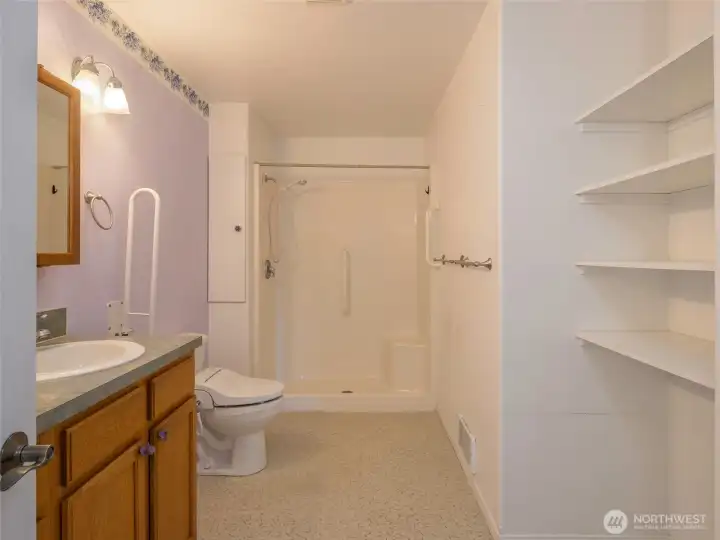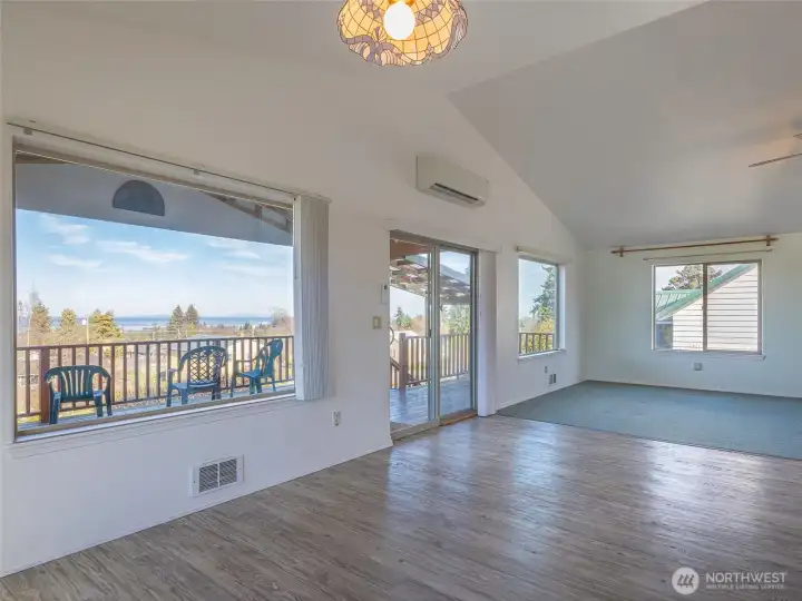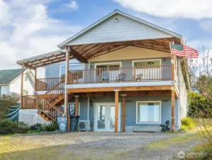 Water view home with convenient, central location! Within walking distance to library, schools, & minutes away from Olympic National Park. Simplify your life with one level living, including an entrance without stairs, a walk-in shower and an open floor plan for easy access. Well designed kitchen with step-in pantry and lots of storage and counter space. Enjoy the water views year around on your huge covered deck. Versatile, partially finished, 1440 sq. ft. daylight basement with a separate entrance, it's own heating/cooling, full bath, bedroom and plenty of space to finish as you wish. Possible ADU, short term rental, workshop/hobby room? Bonus: Home has rooftop solar panels that provide a yearly rebate on your electrical bill.
