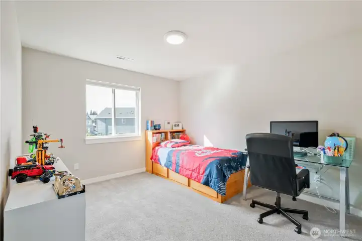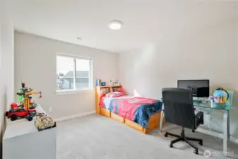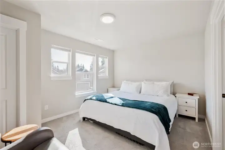 Contemporary, and Move-In Ready! This stylish home offers a fresh, modern aesthetic and thoughtful features throughout. The main floor showcases beautiful, easy-care Luxury Vinyl Plank flooring, recessed lighting, and sleek pendant lights. A light color palette combined with abundant windows allowing natural light to pour in, create a warm, inviting atmosphere. The kitchen features warm wood tones in the cabinets, stone countertops, a center island with an eating bar, and stainless-steel appliances. Inviting living area with 1/2 bath. Upstairs you will find the spacious primary with walk in shower and walk in closet, a full bath, utility, a large second bedroom and large third bedroom which would be a great bonus room if you didn't need it. Home is situated next to the playground. Close to I 5, shopping and so much more.