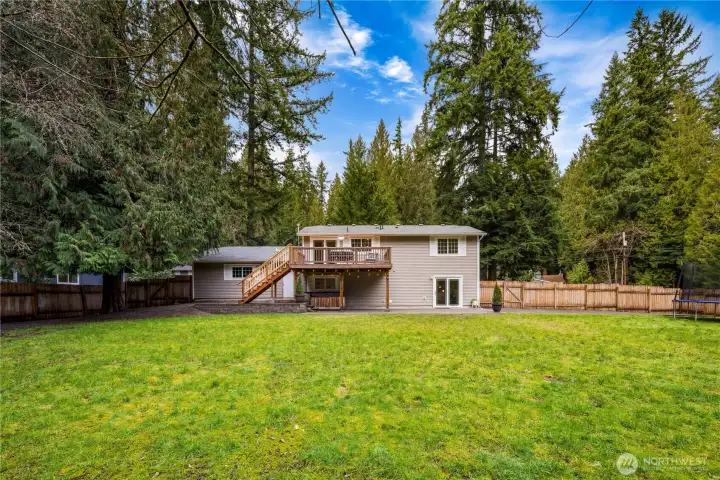Lovely updated home in Lake Marcel, set within a serene enclave surrounded by mature evergreens that give the property a naturally private feel. Resting on a full one third acre, the home sits back from the street with a calm, inviting presence that sets the tone before you even step inside. As you enter, the open concept main floor unfolds with bright natural light and modern flow. A newly remodeled kitchen with stainless steel GE appliances and quartz counters anchors the space, complemented by updated bathrooms, new LVP flooring in the kitchen and living areas, and new carpet in the bedrooms. Soft white interior paint and updated lighting throughout create an airy, comforting atmosphere, and central AC adds welcome comfort in warmer months. From the main living area, the home extends naturally to the spacious deck overlooking the expansive backyard. Stairs guide you down to the lower patio, where the rec room opens to the stone terrace and hot tub, creating an effortless connection between indoor and outdoor living. The fully fenced backyard includes a large level lawn that offers wonderful space for play and gardening. With two bedrooms and a full bath upstairs and two bedrooms and a half bath downstairs, the layout supports flexible living for guests or multigenerational needs. Lake Marcel waterfront park is just a short walk away with canoe launch, playground, and picnic area for year round enjoyment. Inspection available.