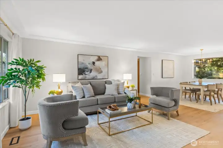 Exquisitely updated and truly one-of-a-kind, this spacious rambler is designed for gathering and everyday ease. Set on a large, level lot—there is room to live, create, and host with confidence where sunset, mountain and peekaboo Puget Sound views through the trees create a daily backdrop. Rich engineered hardwood floors anchor the main living areas, while plush new carpet warms all four bedrooms. A private primary ensuite features an updated 3/4 bath, generous closet space and access to the back deck. All 3 baths have been thoughtfully refreshed. An open concept kitchen invites connection – complete with new stainless-steel appliances and abundant cabinetry and seamlessly flows into inviting living spaces made for conversation and connection. Major systems are dialed in: new gas furnace, hot water tank and flooring, newer roof, fresh interior and exterior paint, and newly installed crawlspace insulation and vapor barrier provide true peace of mind. Exceptional privacy with mature landscaping frames expansive outdoor living areas, perfect for summer evenings, weekend BBQ's and memorable gatherings. With ample shop space and abundant parking, there’s room for your hobbies, projects and gear. Located in the Edmonds School District and convenient to Westgate Elementary, this home offers turnkey comfort, privacy, and lifestyle in one exceptional package. Pre-inspected and sewer scoped for added confidence.