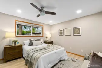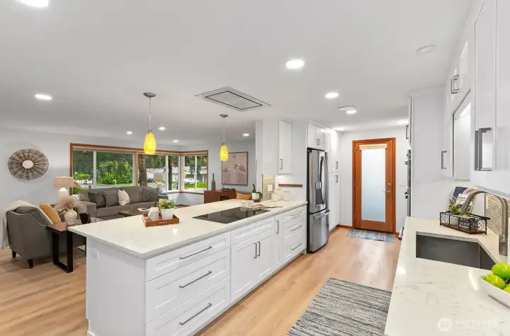 Discover easy one-level living in this beautifully updated three-bedroom rambler in the heart of the Renton Highlands. Enjoy a stunning, fully renovated kitchen and a modern bathroom featuring a walk-in shower and double vanity. The home offers both a light-filled living room and a spacious family room—perfect for relaxing or entertaining. Situated on a generous corner lot with mature trees and plenty of room to play, the property also features a fully fenced private backyard with a new deck, ideal for gatherings, pets, or quiet downtime. An oversized two-car garage with built-in storage provides ample space for hobbies and gear. Conveniently located just minutes from shopping, dining, and neighborhood schools—as well as The Landing, historic Downtown Renton, and Sea-Tac—this location near Duvall Ave NE and Coal Creek Parkway makes commuting to Seattle or the Eastside a breeze. Pre-inspected and pristine, this exceptionally charming house offers comfort, style, and convenience. Welcome home!
