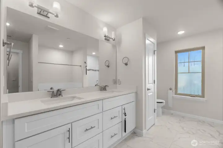Fabulous one-of-a-kind 4 bedroom, 3.5 bath home with 3,324 SF, built in 2021, and shows like new. Features two spacious luxury primary suites, including a main-floor primary with spa-inspired bath, large walk-in shower, and soaking tub—ideal for multi-generational living. Open floor plan with high ceilings and abundant natural light. Gourmet kitchen with quartz countertops throughout, stainless steel appliances, large island, ample cabinetry, and oversized pantry. A/C with heat pump, French doors, interior sprinkler system, and covered front and rear patios for easy indoor-outdoor living. Oversized 2-car garage with EV charger. Community parks and green spaces with easy access to Chehalis Western Trail, shopping, hospital, and I-5. A rare opportunity—this home truly has it all.