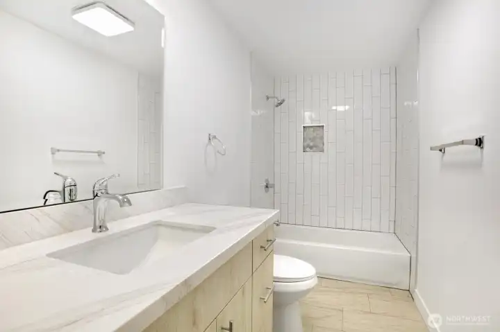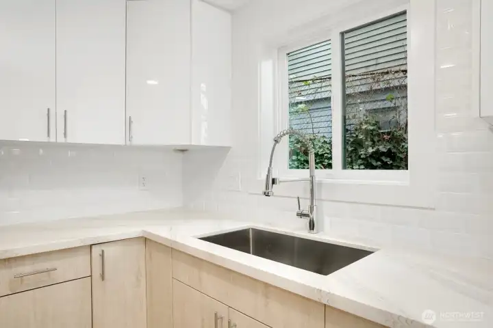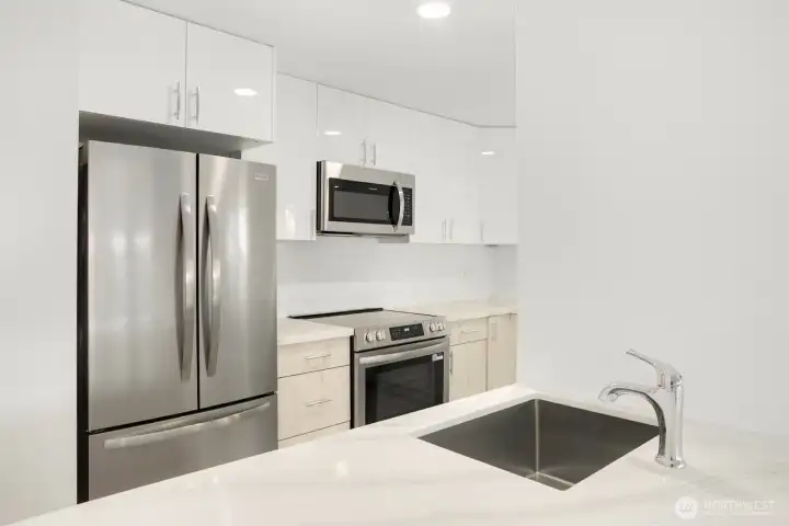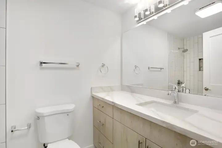 Bright & Fresh contemporary renovation of this spacious 2 bed & 2 bath condo at Lake View. Beautiful sunset, mountain, Lake Union and downtown views including the iconic Space Needle. High-end two-toned high gloss white and wood euro cabinetry w/ custom quartz counters throughout. All stainless appliances & sought after second prep sink in chef-style kitchen with breakfast bar. Spacious dining and living area with wrap around windows and beautiful fully clad marble fireplace w entertainment deck. The sprawling primary suite w/ view deck, designer carpet and walkin closet w/ beautiful ensuite bath. Oversized entry as well as utility/laundry room. Air conditioning. Secure garage parking and a private, secure storage unit along with additional Street Parking. Great location and opportunity to live in Eastlake!