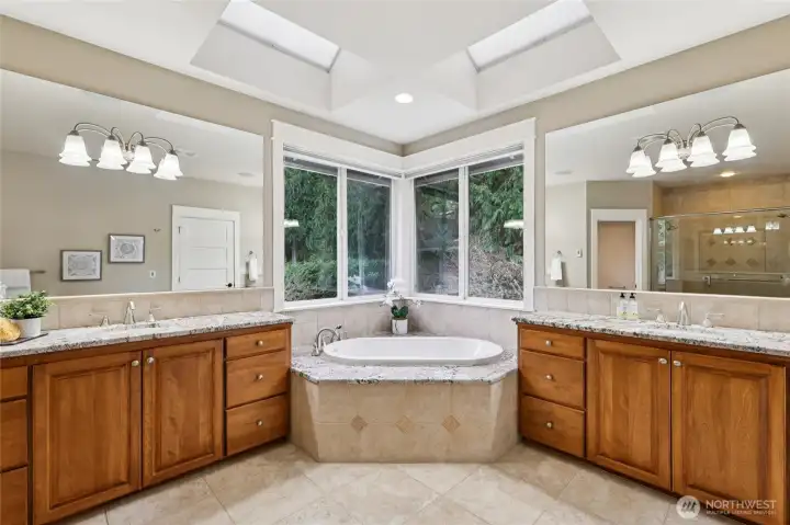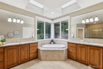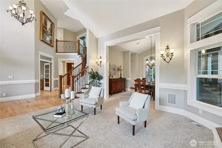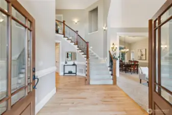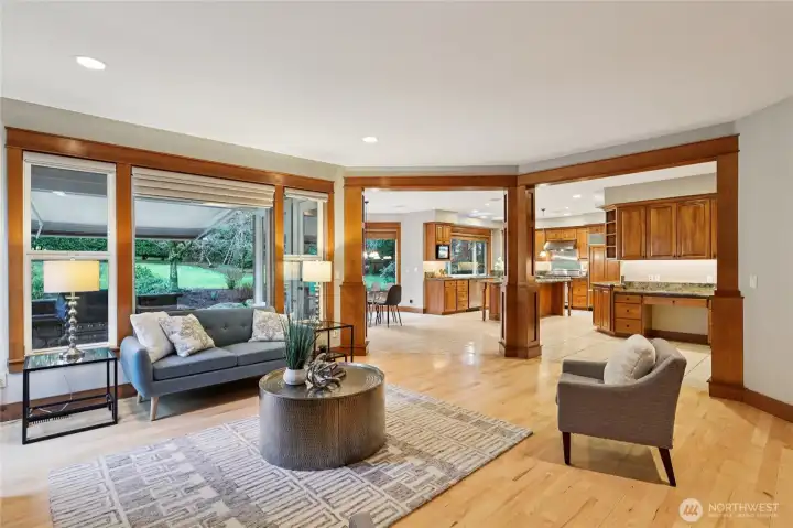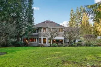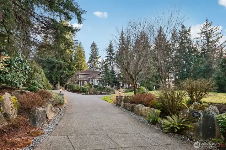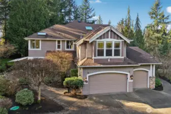 Nestled on a private cul-de-sac, this exceptional 2.34-acre estate offers the perfect blend of luxury, craftsmanship & functionality. A dramatic 2-story entry with a winding staircase welcomes you into a thoughtfully designed home featuring 4 bedrooms, formal office, family room & spacious bonus room. Custom built-ins, hardwood floors, dual staircases, multiple fireplaces, wood-wrapped windows & rich millwork throughout create a timeless & elegant feel. The chef’s kitchen is designed for everyday living & entertaining, showcasing a Viking 6-burner gas range, Sub-Zero fridge, stainless steel appliances, butler’s space, & walk-in pantry. Multiple living spaces flow seamlessly to the wrap-around deck and covered outdoor patio complete with a built-in BBQ. The enormous primary suite is a true retreat, featuring a private sitting area, built-in bookcases, & a luxurious walk-in closet. The expansive bonus room offers endless flexibility for a media room, gym, playroom, or creative space. Designed for comfort and efficiency, the home includes two heat pumps, two hot water tanks, and is wired for a generator. The oversized 3-car garage features a gas heater, 220 outlet, shop space, & additional storage room. Beautifully maintained grounds with a grand cascading waterfall that greets you upon arrival. The property features a 19-zone sprinkler system, mature landscaping, & fruit trees. A native growth protection area enhances privacy and preserves the natural surroundings.